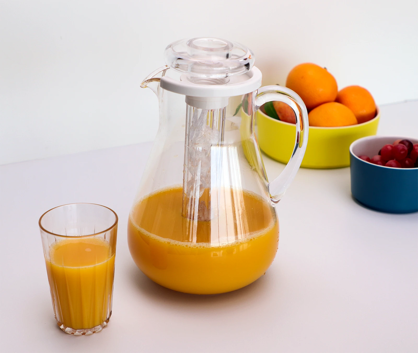 Saftkanne Ø 18 cm, H: 29 cm, 3 Liter MS, transparent mit Eiswasser-Röhre