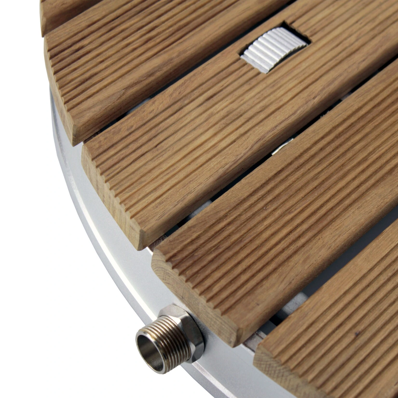 - Runde, massive Bodenplatte aus echtem Teak-Holz