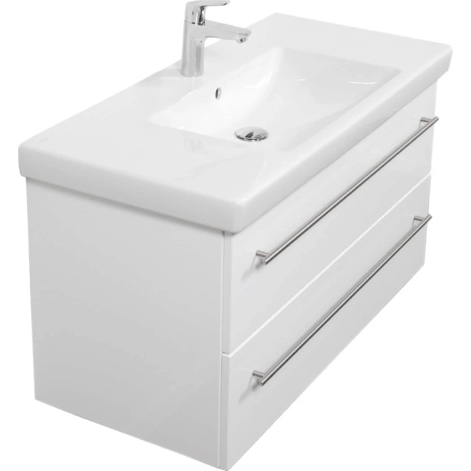Badmöbel inkl. Villeroy & Boch Waschbecken Subway 2.0 100cm und passendem Unterschrank in weiß Hochglanz