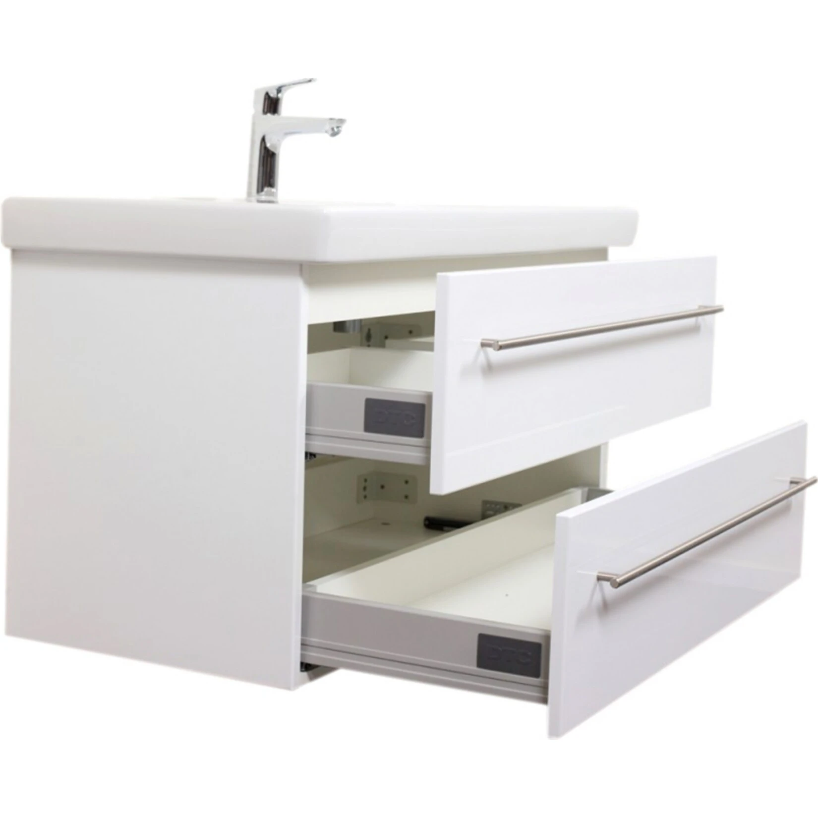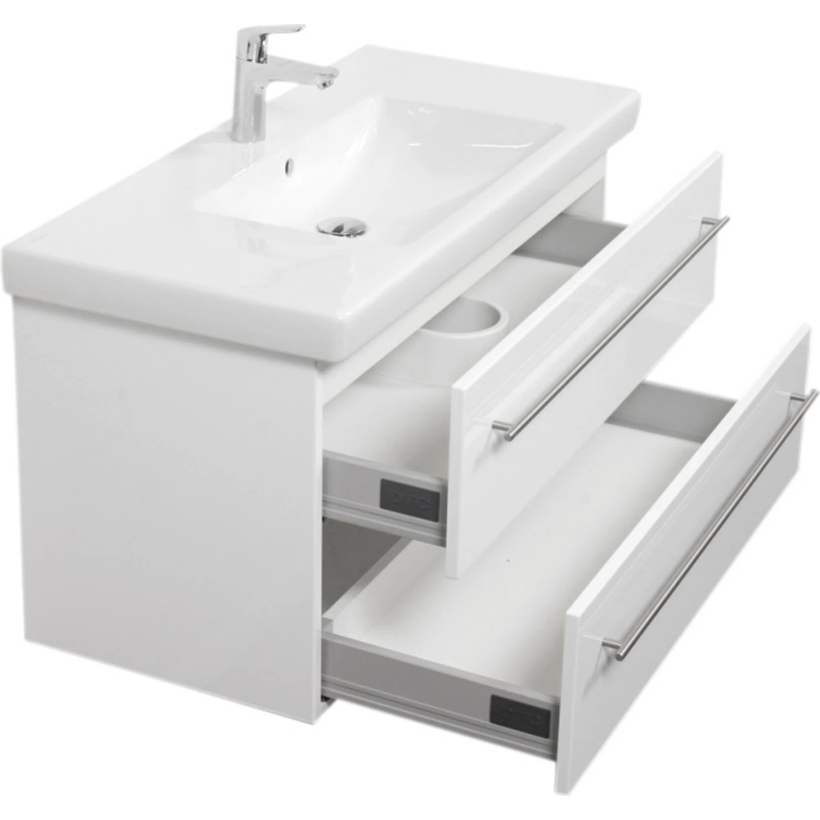 Mit diesem Badmöbel wird Ihnen geholfen Ordnung im Badezimmer zu schaffen. Dafür haben Sie gleich 2 Softclose Schubladen, die sich mühelos mit den kleinen und großen Dingen des täglichen Badezimmer-Lebens befüllen lassen. Bringen Sie Gästehandtücher, große Badetücher, Bade- und Duschgels, aber auch Rasierer, Ihren Föhn oder Schminkutensilien praktisch und schnell im Badmöbel unter. Aber auch an die Reinigung hat das Badmöbel viele Vorteile seinen Konkurrenten gegenüber: für eine herausragende Lebensqualität des Badmöbels wurden Keramik Waschbecken und Waschtisch mit einer wasserfesten Oberfläche versehen, die Staub und Wasserreste länger abhält. Und sollten Sie dennoch Schmutz entdecken, wischen Sie diesen mit einem feuchten Tuch ganz einfach weg. Ihr zukünftiges Möbelstück: