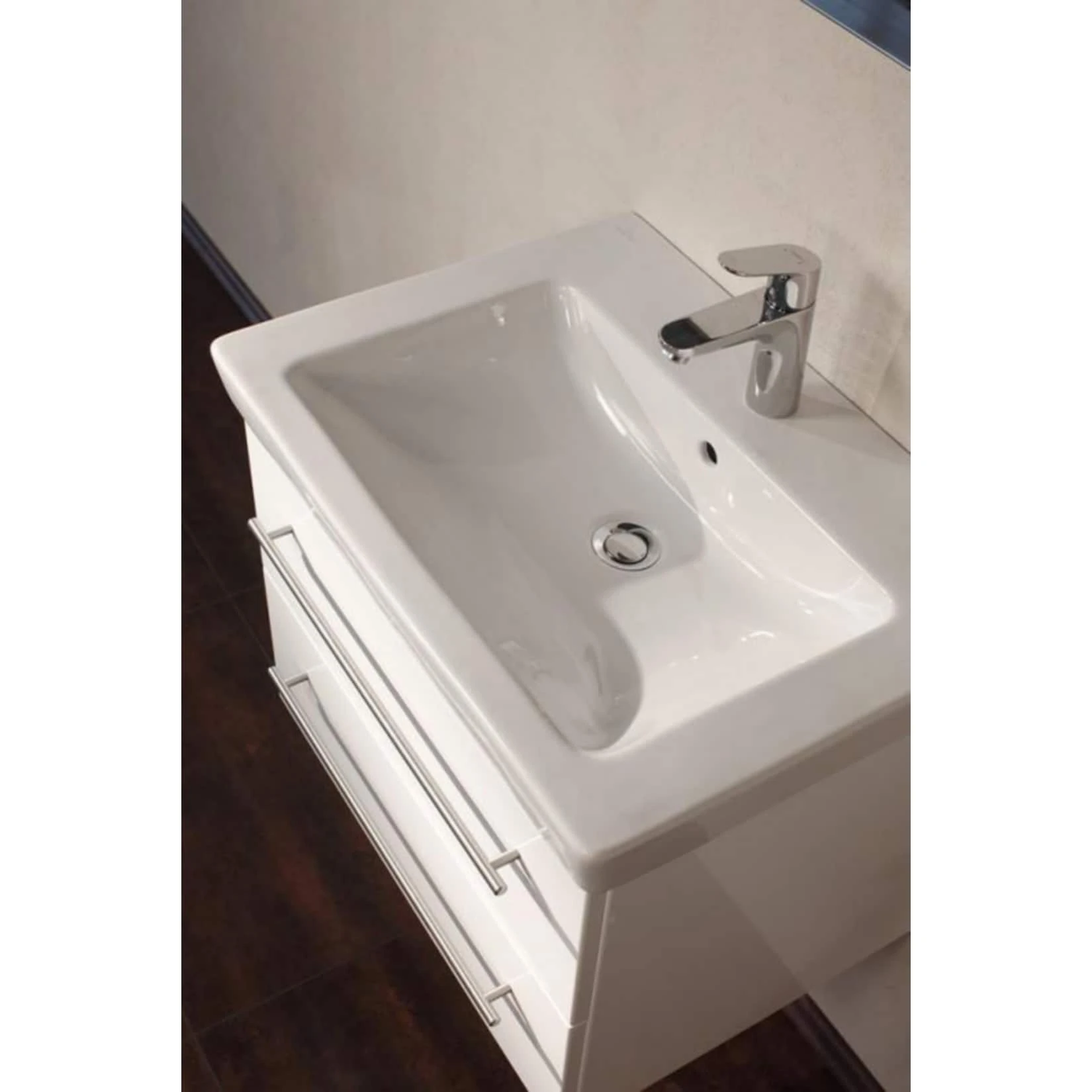 Bereits auf den ersten Blick vermittelt dieser Waschtisch ein ausgesprochen modernes und hochqualitatives Erscheinungsbild. Das Keramik-Waschbecken von dem international renommierten Hersteller Villeroy & Boch wirkt, insbesondere durch die eckige Formgebung, sehr modisch und ist, mit einer Breite von 65cm, ideal für die Verwendung im Alltag geeignet. Der Waschbecken-Unterschrank mit 2 Softclose-Schubladen komplementiert, durch die Farbgebung in hochglanz-weiß, das ansprechende und äußerst exklusive Erscheinungsbild. Somit ist dieser Waschtisch in Bezug auf die Funktionalität und das Design ein absolutes Highlight für Ihr Badezimmer!