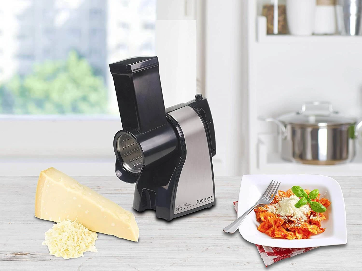 BEPER BP.400 elektrischer Gemüsehobel aus Stahl mit 3 Aufsätzen, Julienne Scheiben & Reibe