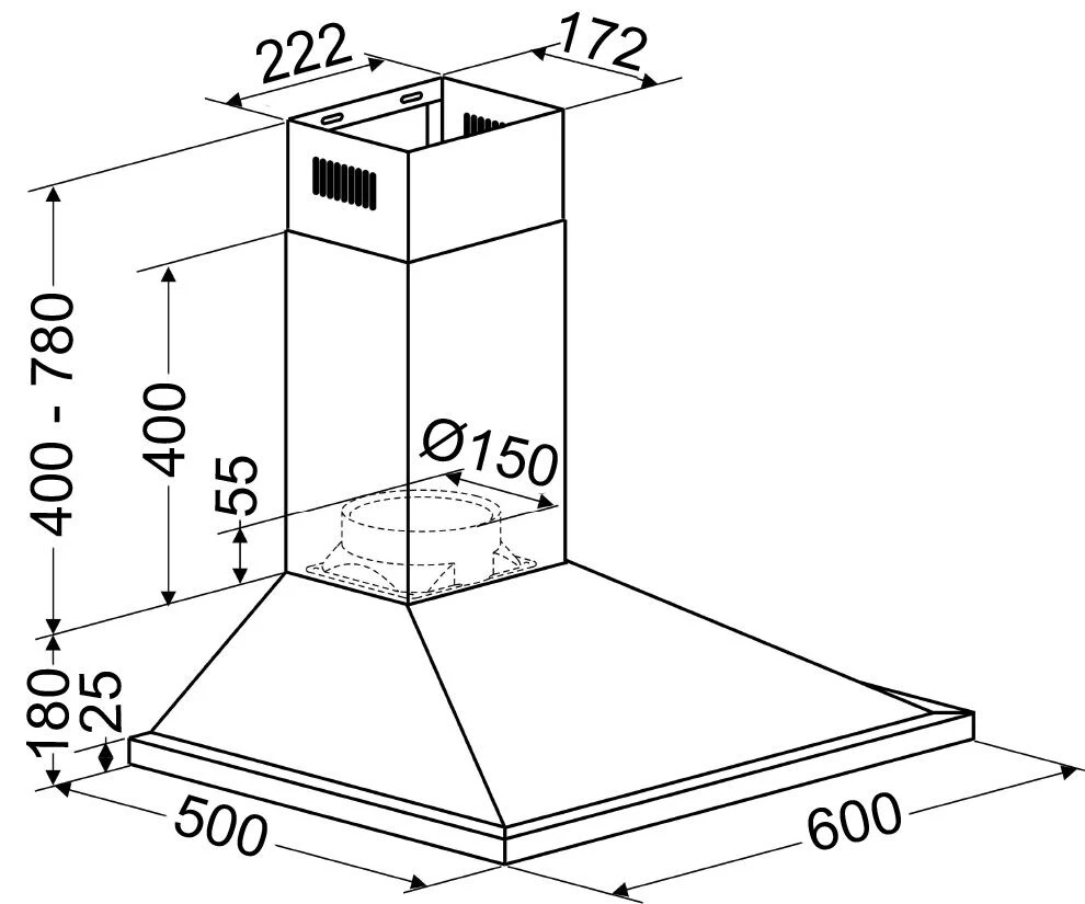 - Luftaustritt: Ø 150 mm