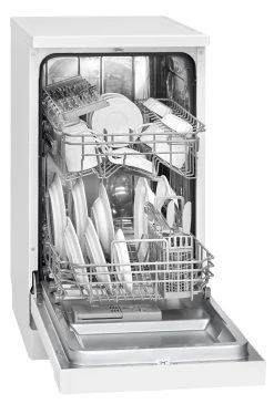 Der Geschirrspüler bietet viel Platz für Besteck, Teller, Tassen und Gläser (9 Maßgedecke). Wählen Sie aus sechs verschiedenen individuell wählbaren Programmen das Passende für Sie aus.