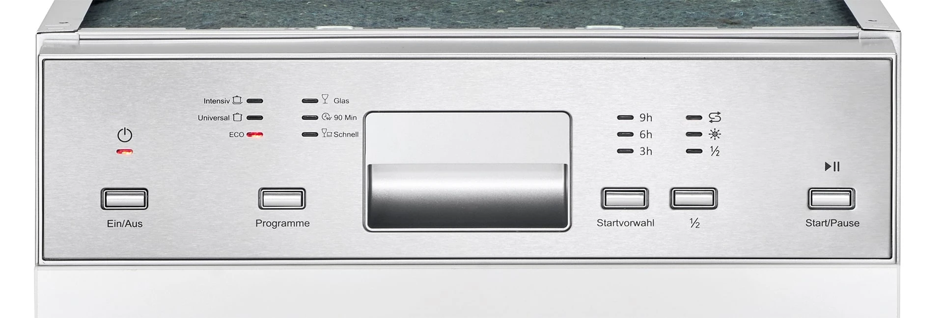 Mit Hilfe der intuitiven Bedienung ist das Einstellen Ihres benötigten Programm schnell erledigt. Wählen Sie je nach Geschirrart und Verschmutzungsgrad ein passendes Programm aus (Reinigungstemperaturen 45°C – 65°C).