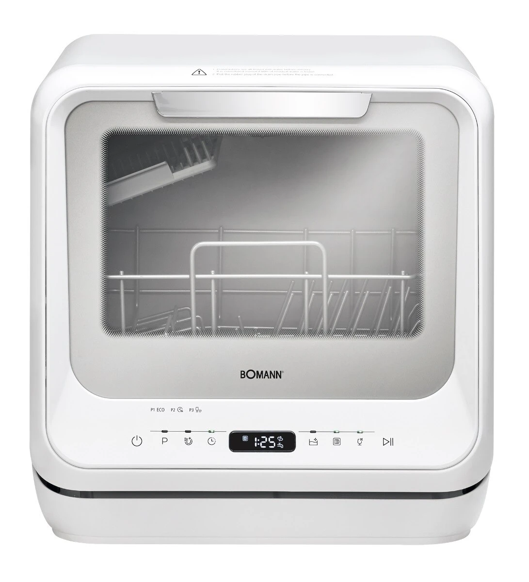 Das verschmutzte Geschirr jeden Tag mühevoll per Hand zu spülen muss heutzutage wirklich nicht mehr sein. Bomann unterstützt Sie mit dem Mini-Geschirrspüler TSG 5701, der auch bei wenig Fläche seinen Platz in Ihrer Küche findet. Besonders ideal ist der Tisch-Geschirrspüler in Single-Haushalten, im Ferienhaus oder im Büro. Am hochwertigen LED-Display können Sie beispielsweise die Restlaufzeit ablesen. Mit Reinigungstemperaturen von 45°C – 72°C wird Ihr Geschirr gründlich und perfekt gereinigt. Ein silbergrauer Geschirrkorb und eine Besteckablage sind im Lieferumfang inbegriffen.