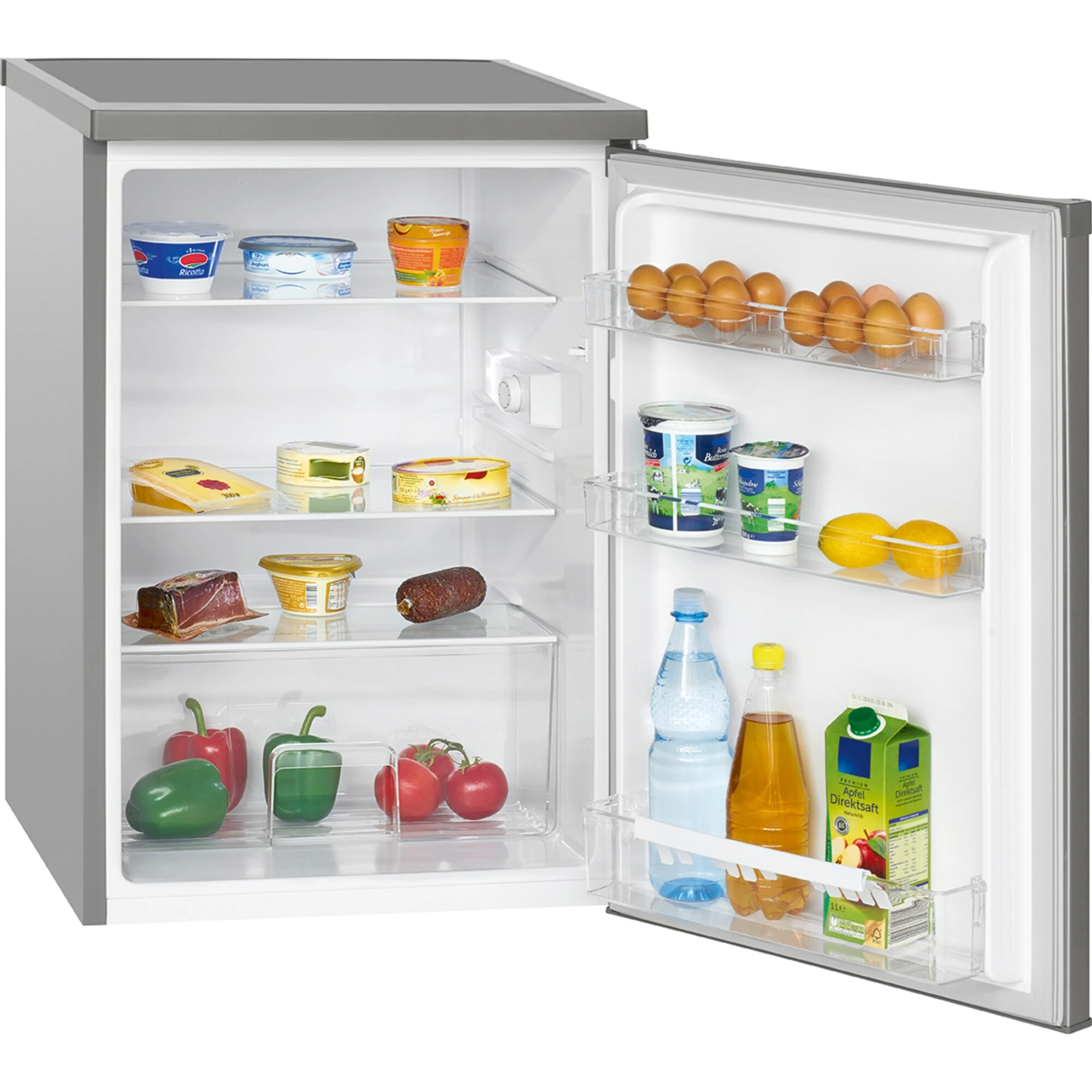 Der Vollraumkühlschrank Bomann VS 2185.1 ist mit seinen Gesamtnutzinhalt von 133 Litern perfekt für den kleinen Haushalt geeignet und mit drei Glasabstellflächen, davon zwei höhenverstellbar, einer transparenten Obst-/Gemüseschublade sowie drei Türfächer ausgestattet. Die Temperaturregelung erfolgt stufenlos von 0°C bis +8°C und die LED-Innenraumbeleuchtung sorgt stets für eine gute Sicht auf die gelagerten Speisen. Dank des wechselbaren Türanschlags sowie der justierbaren Standfüße lässt sich der kompakte VS 2185.1 flexibel platzieren. Mit einem Stromverbrauch von 90 kWh im Jahr ist der VS 2185.1 in die Energieeffizienzklasse E eingestuft.