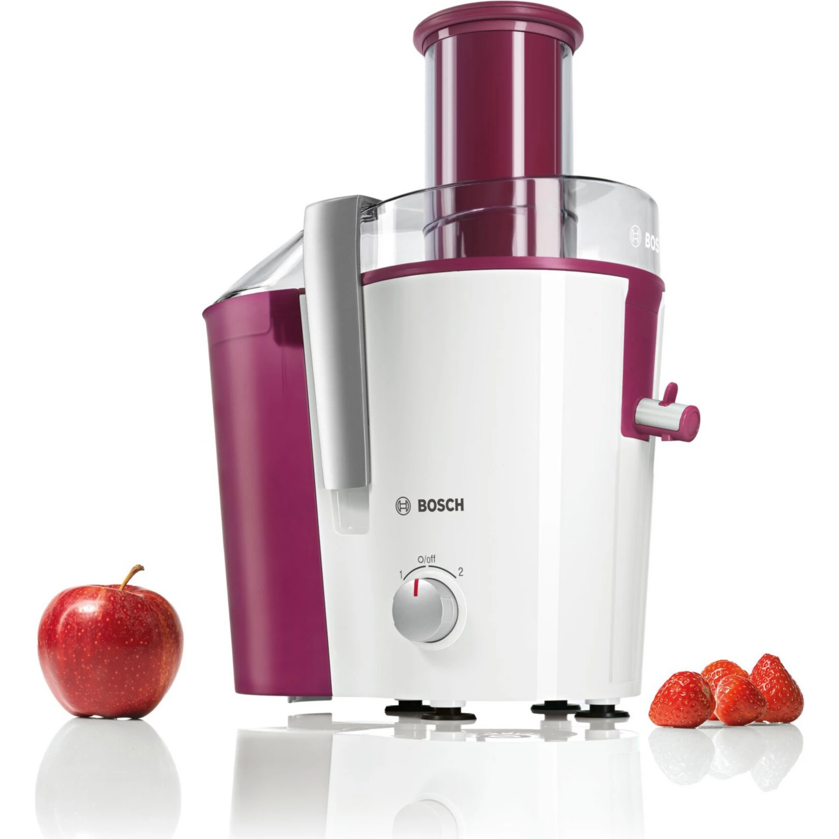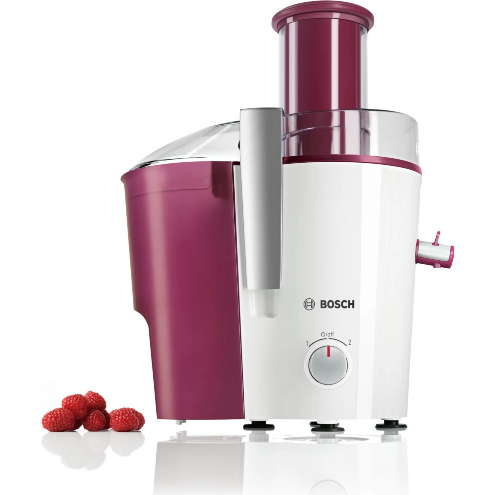 Der Bosch MES25C0 Entsafter eignet sich durch seinen großen Einfüllschacht für ganze Früchte ohne sie Vorschneiden zu müssen. Der Bosch MES25C0 Entsafter besitzt ein hochwertiges Edelstahl-Microsieb und zwei Schaltstufen für hartes und weiches Entsaftungsgut. Der praktische Ausgießer mit Tropfstopp verhindert Nachtropfen und sorgt so für eine saubere Arbeitsfläche. Der entnehmbare Tresterbehälter fasst 2 Liter und der Saftauffangbehälter mit Schaumtrennung 1.25 Liter. Zur einfachen Reinigung sind alle abnehmbaren Teile spülmaschinengeeignet.