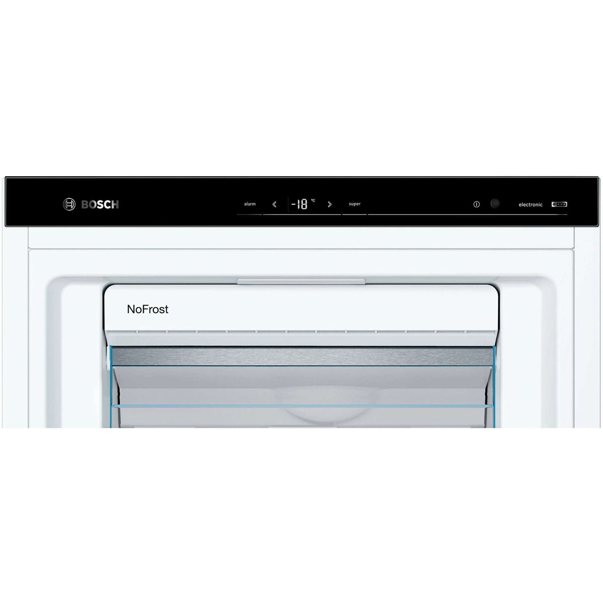 Der Gefrierschrank Bosch GSN58AWCV ist mit einem Gesamtnutzinhalt von 366 Litern ideal für den großen Haushalt geeignet. Er stellt fünf transparente Gefrierschubladen, davon eine bigBox, um großes Gefriergut optimal zu lagern und zu stapeln, sowie drei Gefrierfächer mit Klappe zur Verfügung. Alle Gefrierfächer und Glasplatten sind dank varioZone einfach herausnehmbar und lassen sich flexibel auf die persönlichen Platzansprüche einstellen. Dank der noFrost-Technik gegen Eis- und Reifbildung wird mühsames Abtauen überflüssig und freshSense sorgt für eine konstante Temperatur durch intelligente Sensortechnik. Die SuperGefrieren-Funktion senkt für einen definierten Zeitraum die Temperatur zum schnelleren Einfrieren von neu eingelagerten Lebensmitteln. Die Temperaturregelung des GSN58AWCV erfolgt elektronisch und ist digital ablesbar. Besonders komfortabel ist der herausnehmbare IceTwister für Eiswürfel nach Wunsch. Mit einem Stromverbrauch von 178 kWh im Jahr ist der GSN58AWCV in die Energieeffizienzklasse C eingestuft.