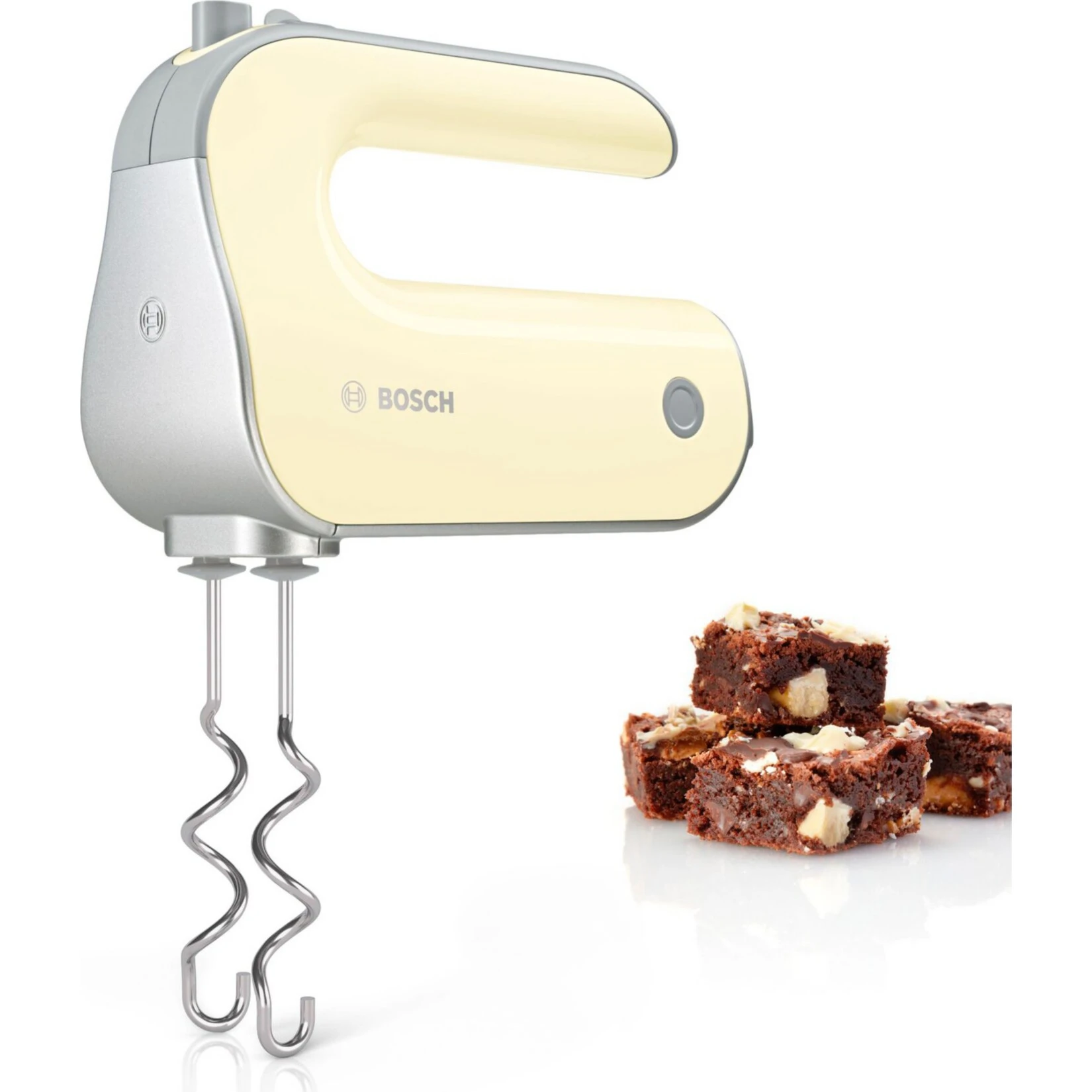 Der Bosch MFQ40301 ist ein quirliger Allrounder und bringt Spaß in die Küche. Der leistungsstarke und zugleich leise 500 Watt Motor schlägt mühelos Sahne und rührt Teige perfekt. Der MFQ40301 erzielt optimale Schlag- und Rührergebnisse im Handumdrehen und ist die perfekte Lösung für einfaches Quirlen und Kneten. Der MFQ40301 liegt optimal in der Hand und ermöglicht dank seines geringen Gewichts angenehmes und entspanntes Arbeiten. Neben seinem ergonomischem Design bietet der auch eine griffige SoftTouch-Beschichtung für eine gute Handhabung. Die innovativen FineCreamer-Schneebesen sind mit Kügelchen ausgestattet und wirbeln mehr Luft in die zu verarbeitende Masse. Somit erhält man luftigere Teige und Cremes, mehr Eischnee und Sahne in kürzerer Zeit