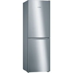 Die Kühl-/Gefrierkombination Bosch KGN34NLEA ist mit einem Gesamtnutzinhalt von 300 Litern ideal für den mittelgroßen Haushalt geeignet. Im 193 Liter umfassende Kühlbereich haben frische Lebensmittel auf vier Abstellflächen aus Sicherheitsglas, davon zwei höhenverstellbar, in einer MultiBox mit Wellenboden zur idealen Lagerung von Obst und Gemüse sowie in drei Türfächern viel Platz. Das MultiAirflow-System sorgt für eine optimale und gleichmäßige Kälteverteilung. Der Gefrierbereich umfasst 107 Liter, ist mit drei transparenten Gefriergutschubladen ausgestattet und muss dank der NoFrost-Technologie gegen Eisbildung nie wieder mühsam abgetaut werden. Die Temperatur der KGN34NLEA ist für jede Temperaturzone getrennt elektronisch regelbar und über LED ablesbar. Mit einem Stromverbrauch von 244 kWh im Jahr ist die KGN34NLEA in die Energieeffizienzklasse E eingestuft.