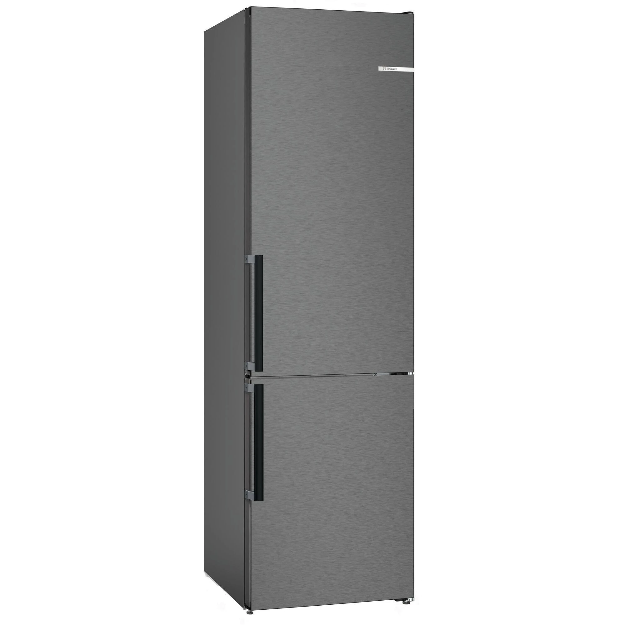 Die Kühl-/Gefrierkombination Bosch KGN39VXCT ist mit einem Gesamtnutzinhalt von 363 Litern ideal für den mittelgroßen Haushalt geeignet. Im 260 Liter umfassende Kühlbereich haben frische Lebensmittel auf fünf Abstellflächen aus Sicherheitsglas, davon drei höhenverstellbar, in einer VitaFresh Schublade mit Feuchtigkeitsregulierung für Obst und Gemüse, einer VitaFresh 0°C Schublade für Fisch und Fleisch sowie in drei Türfächern jede Menge Platz. Die SuperKühlen-Funktion kühlt neu eingelegte Lebensmittel schneller und bietet so Schutz für bereits Gekühltes und das MultiAirflow-System sorgt für eine optimale und gleichmäßige Kälteverteilung. Der flexibel nutzbare Gefrierbereich umfasst 103 Liter und ist mit drei transparenten Gefriergutschubladen ausgestattet. Dank der Twin-NoFrost-Technologie muss das Gerät nie wieder mühsam abgetaut werden SuperGefrieren-Funktion mit Eingefrierautomatik sorgt für Tiefkühlergebnisse in Rekordzeit. Die Temperatur der KGN39VXCT ist für jede Temperaturzone getrennt elektronisch. Mit einem Stromverbrauch von 162 kWh im Jahr ist die KGN39VXCT in die Energieeffizienzklasse C eingestuft.