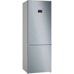 Die Kühl-/Gefrierkombination Bosch KGN497LDF ist mit einem Gesamtnutzinhalt von 440 Litern ideal für den großen Haushalt geeignet. Im 311 Liter umfassende Kühlbereich haben frische Lebensmittel auf fünf Abstellflächen aus Sicherheitsglas, davon drei höhenverstellbar, in einer VitaFresh XXL Schublade mit Feuchtigkeitsregulierung für Obst und Gemüse und einer VitaFresh 0°C Schublade für Fisch und Fleisch sowie in vier Türfächern jede Menge Platz, um übersichtlich gelagert zu werden. Die SuperKühlen-Funktion mit automatischer Deaktivierung kühlt frische Einkäufe schneller ab und dank der hochglanz Rückwand mit MultiAirflow werden Feuchtigkeit und Temperatur gleichmäßig über den gesamten Kühlbereich verteilt, von den Türabstellern bis zu den hinteren Ecken. Der Gefrierbereich der KGN497LDF umfasst 129 Liter und ist mit drei transparenten Gefriergutschubladen ausgestattet. Dank der Twin-NoFrost-Technologie gegen Eisbildung das gesamte Gerät nie wieder mühsam abgetaut werden und die automatische Supergefrieren-Funktion schützt bereits gefrorene Lebensmittel vor dem auftauen. Die Temperaturregelung und Funktionssteuerung erfolgt getrennt für Kühl- und Gefrierbereich über das außenliegende LED-Display. Mit einem Stromverbrauch von 223 kWh im Jahr ist die KGN497LDF in die Energieeffizienzklasse D eingestuft.