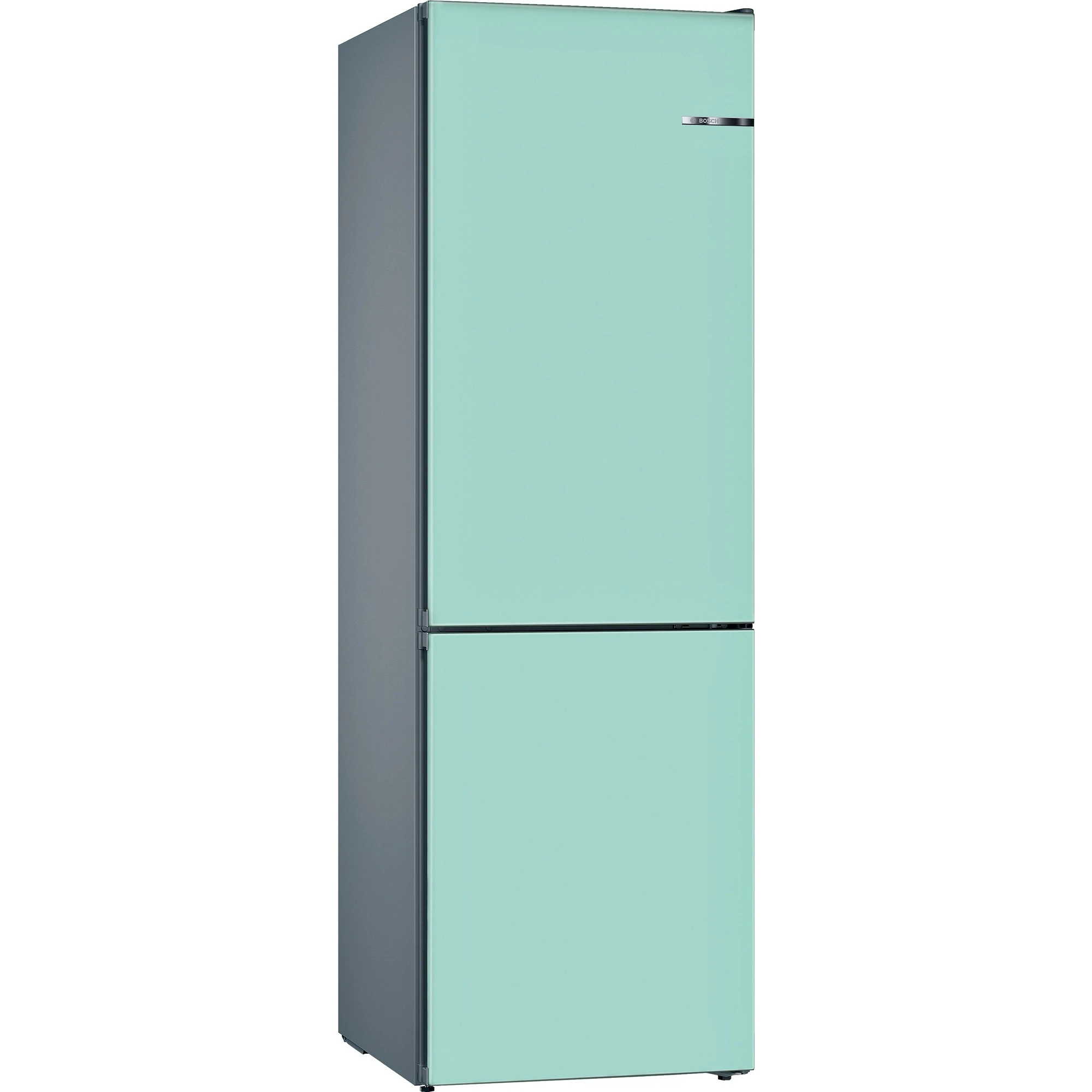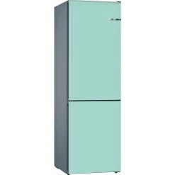 Die Vario Style Kühl-/Gefrierkombination KVN39ITEA von Bosch ist mit einem Gesamtnutzinhalt von 368 Litern ideal für den mittelgroßen Haushalt geeignet und lässt sich dank der austauschbaren Türfront jederzeit dem persönlichen Geschmack und der Einrichtung entsprechend anpassen. Ihre pastellblaue Front ist die perfekte Farbwahl für Küchen im Retro-Chic. Der 279 Liter umfassende Kühlbereich stellt für die übersichtliche Lagerung frischer Lebensmittel fünf Abstellflächen aus Sicherheitsglas, davon drei höhenverstellbar und ein ausziehbares EasyAccess Shelf, eine VitaFresh Obst-/Gemüseschublade, zwei VitaFresh 0°C Schubladen sowie vier Türfächern zur Verfügung. Die SuperKühlen-Funktion kühlt neu eingelegte Einkäufe schneller ab und das MultiAirflow-System sorgt für eine optimale und gleichmäßige Kälteverteilung. Der Gefrierbereich umfasst 89 Liter, ist mit drei transparenten Gefriergutschubladen ausgestattet und muss dank NoFrost-Technologie nie wieder mühsam abgetaut werden. Die SuperGefrieren-Funktion schützt bereits lagerndes Gefriergut vor dem Antauen, wenn größere Mengen wärmerer Speisen eingefroren werden. Die Temperatur der KVN39ITEA ist für jede Temperaturzone getrennt regel- und über LED ablesbar. FreshSense sorgt für eine konstante Temperatur durch intelligente Sensortechnik und dank Perfect Fit ist die Platzierung der Kühl-/Gefrierkombination an der Wand oder neben anderen Geräten möglich. Mit einem Stromverbrauch von 238 kWh im Jahr ist die KVN39ITEA in die Energieeffizienzklasse E eingestuft.