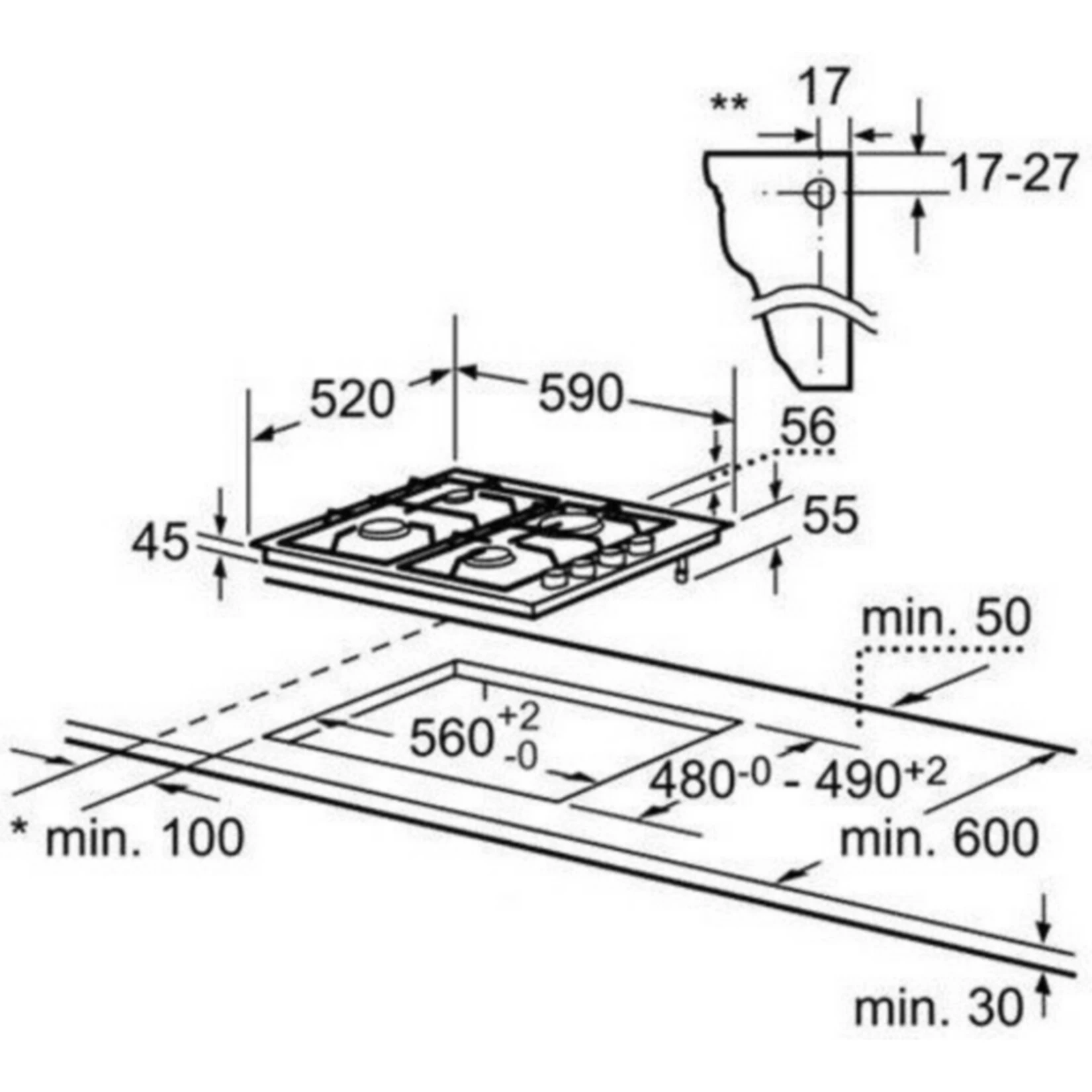 - Voreingestellt auf Erdgas (20 mbar) / ERDGAS ODER FLÜSSIGGAS MÖGLICH (für Flaschengas werden zusätzliche Düsen benötigt)