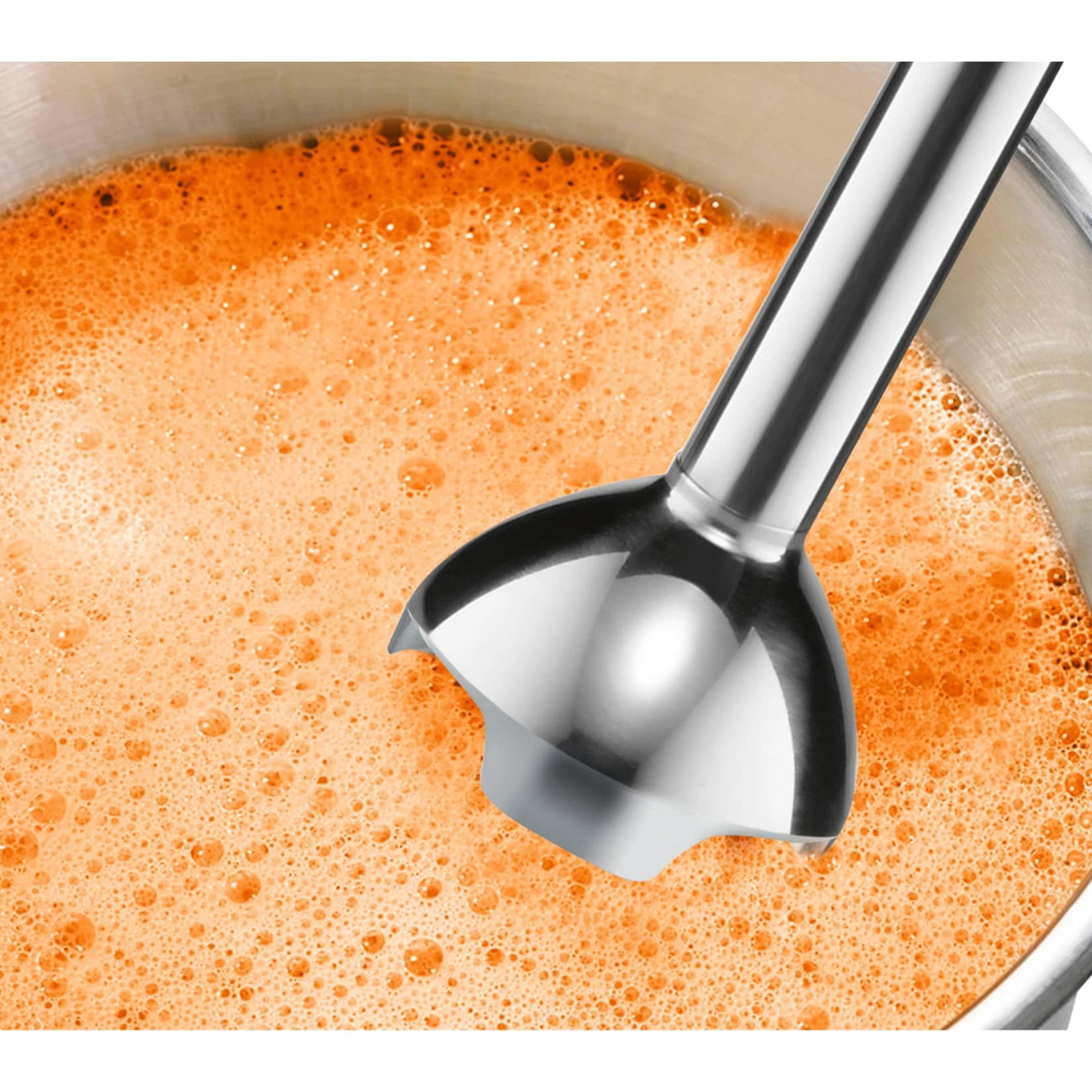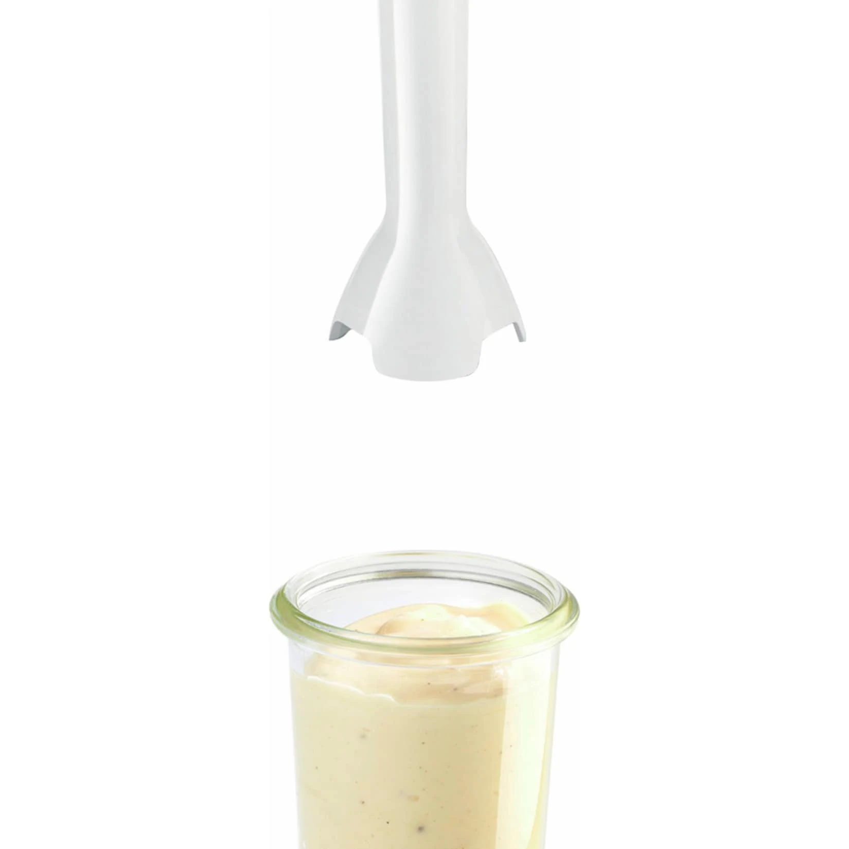 Der Stabmixer MSM2623G ist kraftvoll, robust und vielseitig, dank 600-Watt-Motor und Zubehör. Der ergonomisch geformte Griff, das geringe Gewicht sowie die groß, bequem zu bedienende Taste trägt entscheidend zum Komfort bei. Mit dem praktischen Universalzerkleinerer können Kräuter, Nüsse, Zwiebeln, Fleisch, Käse, usw. gehackt werden. Der Mini-Mixfuß ist perfekt für kleine Mengen und ideal für Babynahrung. Auch geeignet für die direkte Anwendung in kleinen, schmalen Gefäßen. Mit dem Mini-Mixfuß kann man leckere Dips, Dressings oder Saucen zubereiten – einfach, schnell und auch in kleinen Mengen.