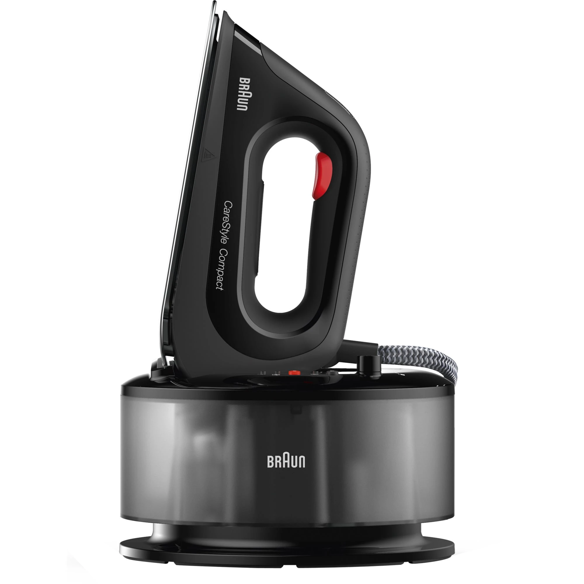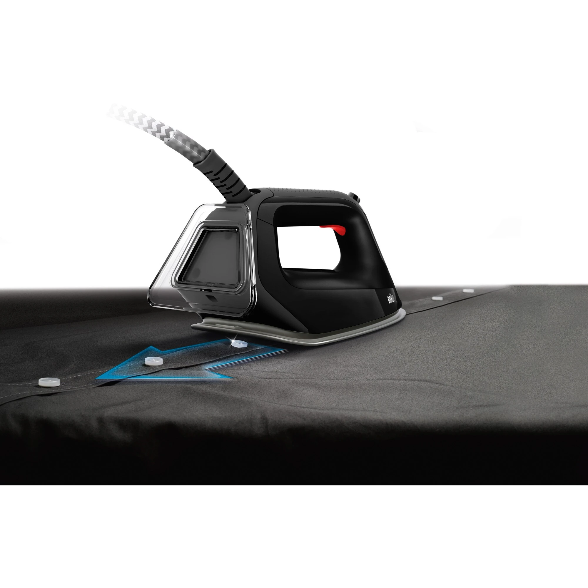 Die Braun CareStyle Compact Dampfbügelstation IS 2058 BK vereint die Power eines Dampfbügeleisens mit kompaktem Design und praktischer Handhabung. Mit seiner einzigartigen Kombination aus DoubleSteam-Technologie und der FreeGlide 3D-Technologie liefert es beste Bügelergebnisse in kürzerer Zeit und sein innovatives vertikales Design beansprucht weniger Platz. Dank höherem Dampfdruck kann der feine Dampf das Gewebe komplett durchdringen und das Bügeln wird kinderleicht. Die patentierte nach oben gewölbte Bügelsohle ermöglicht 360°-Gleitfähigkeit über jeden Stoff und über jedes Hindernis– selbst rückwärts. Die digitale Technologie der CareStyle Reihe reguliert die Temperatur effizienter als ein herkömmliches Thermostat. Damit wird einem Arbeit abgenommen und man muss sich nicht mehr mit Wasser herumärgern, das aus der Bügelsohle austritt und Wasserflecken auf der Kleidung verursacht. Die smarte iCare-Funktion bietet eine sichere Temperatur für jeden Stoff und sorgt so für den Schutz der Kleidung – ohne Zeit beim Aufheizen oder Abkühlen zu verlieren.