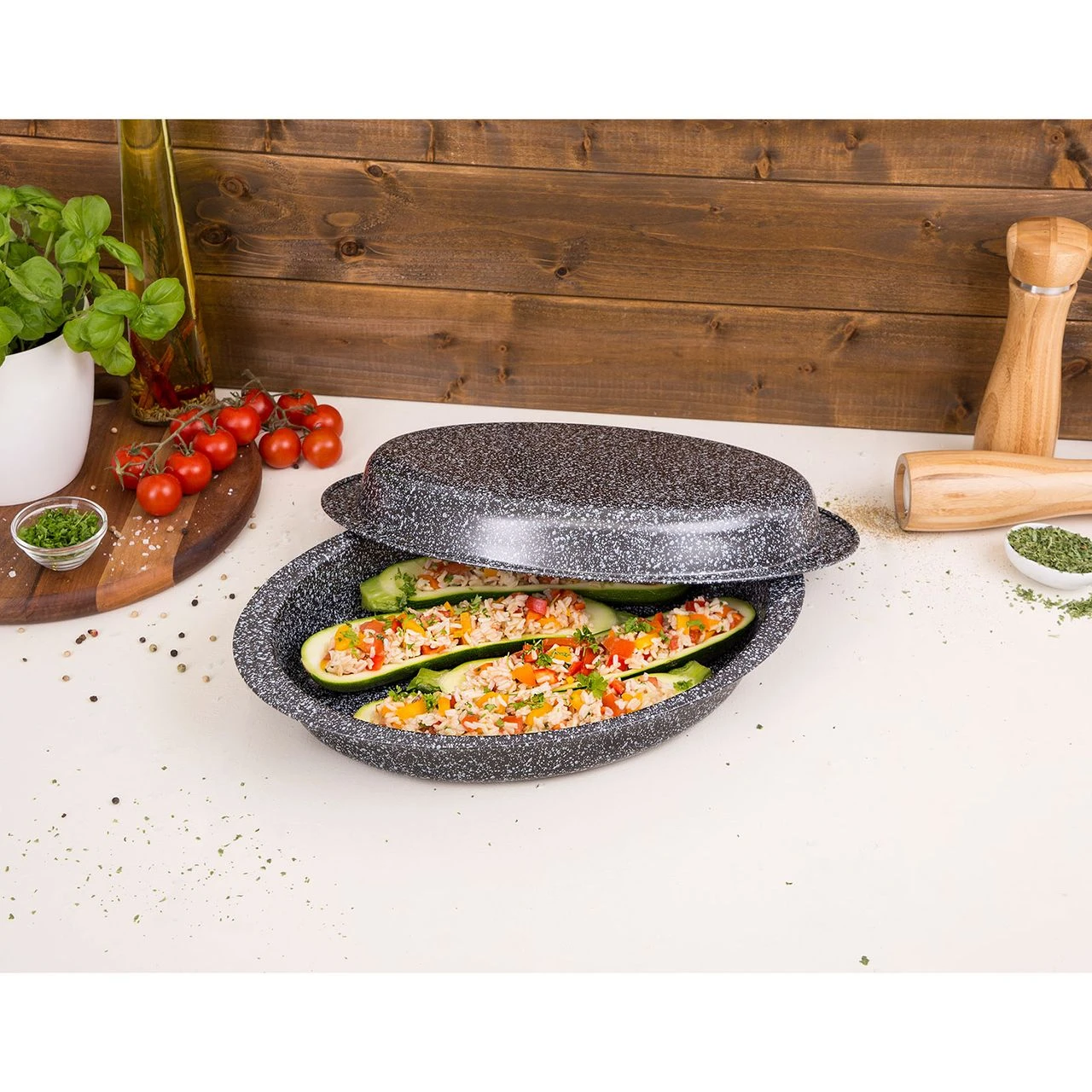 Mit diesem zweiteiligen Ofenset in Profi-Qualität verhindert jedes Anbacken, Anbraten bzw. Anhaften und ist dadurch leicht zu reinigen.