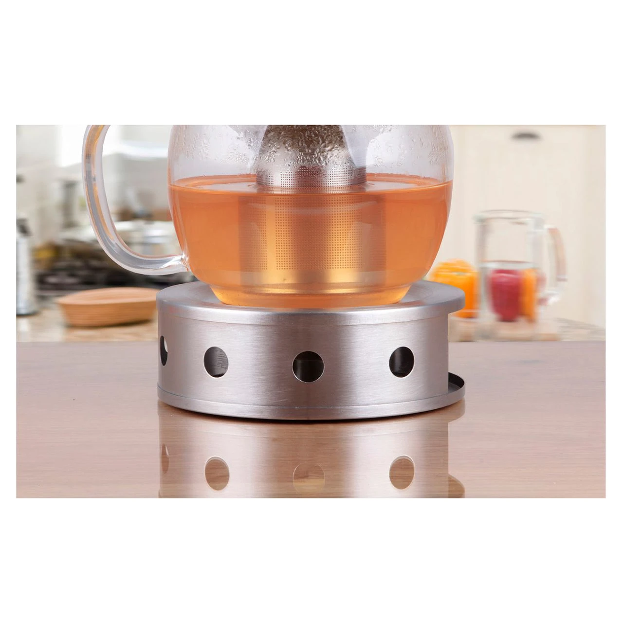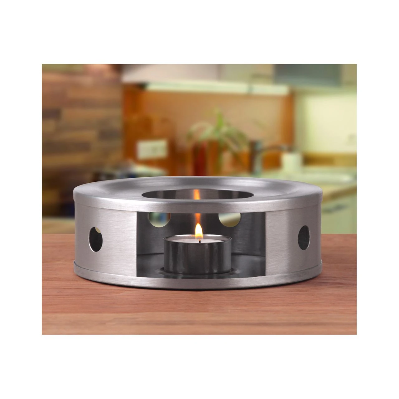 Dieses Stövchen aus rostfreiem Edelstahl darf auf keinem gedeckten Tisch fehlen. Es hält Tee, Kaffee oder Speisen warm und zaubert eine behagliche Atmosphäre durch das flackernde Teelicht (nicht im Lieferumfang enthalten).