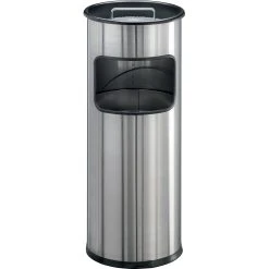 Mit dem Durable Papierkorb EDELSTAHL mit Ascher 17 Liter im tollen Design aus gebürstetem Edelstahl, erhalten Síe einen stilvollen und lebenslang haltbaren Papierkorb mit Ascher für den Innen- und Außenbereich, der auch ideal für gekennzeichnete Raucherzonen und Eingangsbereiche ist.
