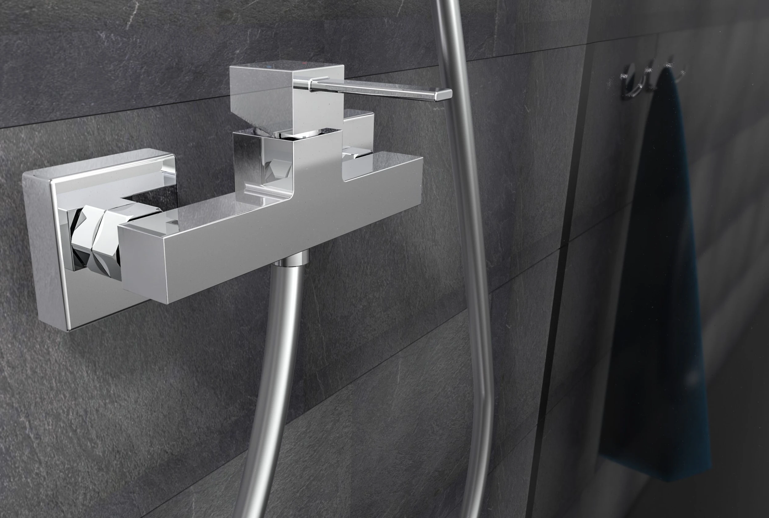 - Elegante Badewannenarmatur im trendstarken kubischen Design