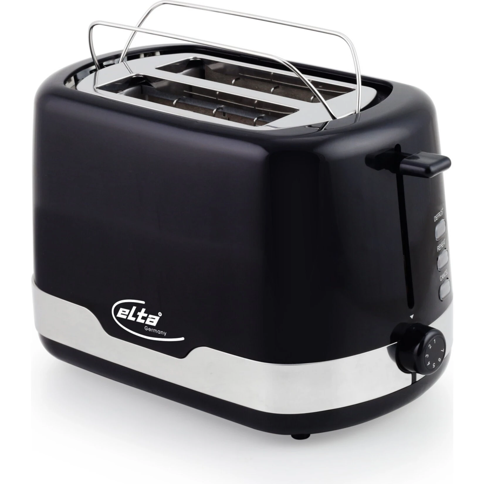 Elta Toaster Cool Touch (Black Line) bis 850W Farbe: schwarz Artikelnr.: ETO-850.15 Mit Brötchenaufsatz 2Scheiben Toast Einfache Reinigung Hohe Qualität Krümelschublade