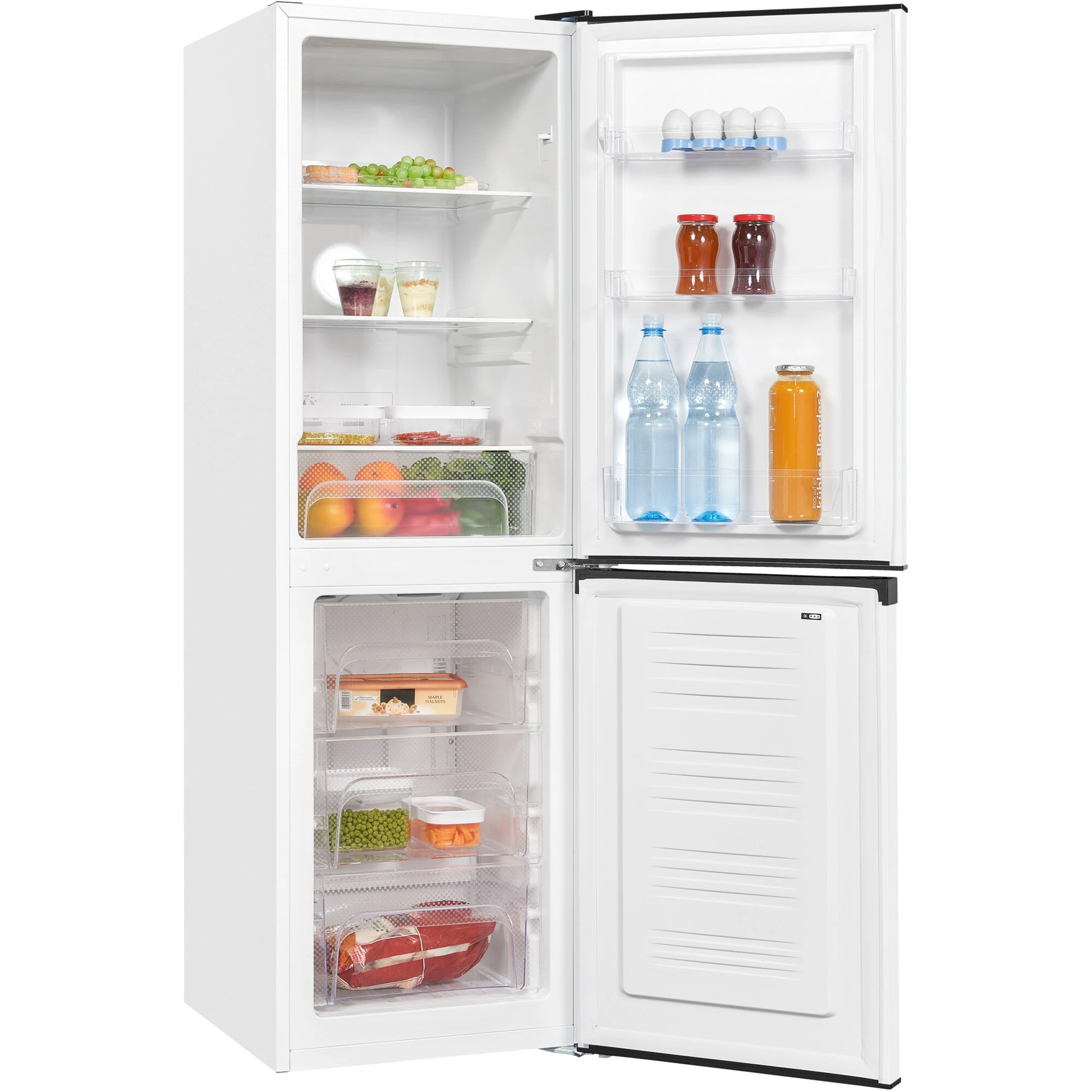 Die Kühl-/Gefrierkombination Exquisit KGC195-65-NF-330F ist mit einem Gesamtnutzinhalt von 193 Litern ideal für den mittelgroßen Haushalt geeignet. Der 129 Liter umfassende Kühlraum stellt drei Glasabstellflächen, davon eine höhenverstellbar, eine Obst-/Gemüseschubladen sowie drei Türfächer zur übersichtlichen Lagerung frischer Lebensmittel zur Verfügung. Das LED-Licht sorgt stets für eine gute Sicht auf die Speisen und der Umluftventilator sorgt für eine gleichmäßige Kälteverteilung. Der Gefrierbereich der KGC195-65-NF-330F umfasst 64 Liter und ist mit drei Gefrierschubladen ausgestattet. Dank der NoFrost-Technologie wird die Eisbildung im Gefrierraum verhindert, sodass dieser nicht mehr mühsam abgetaut werden muss. Die Temperatur lässt sich bequem elektronisch steuern. Mit einem Stromverbrauch von 256 kWh im Jahr ist die KGC195-65-NF-330F in die Energieeffizienzklasse F eingestuft.