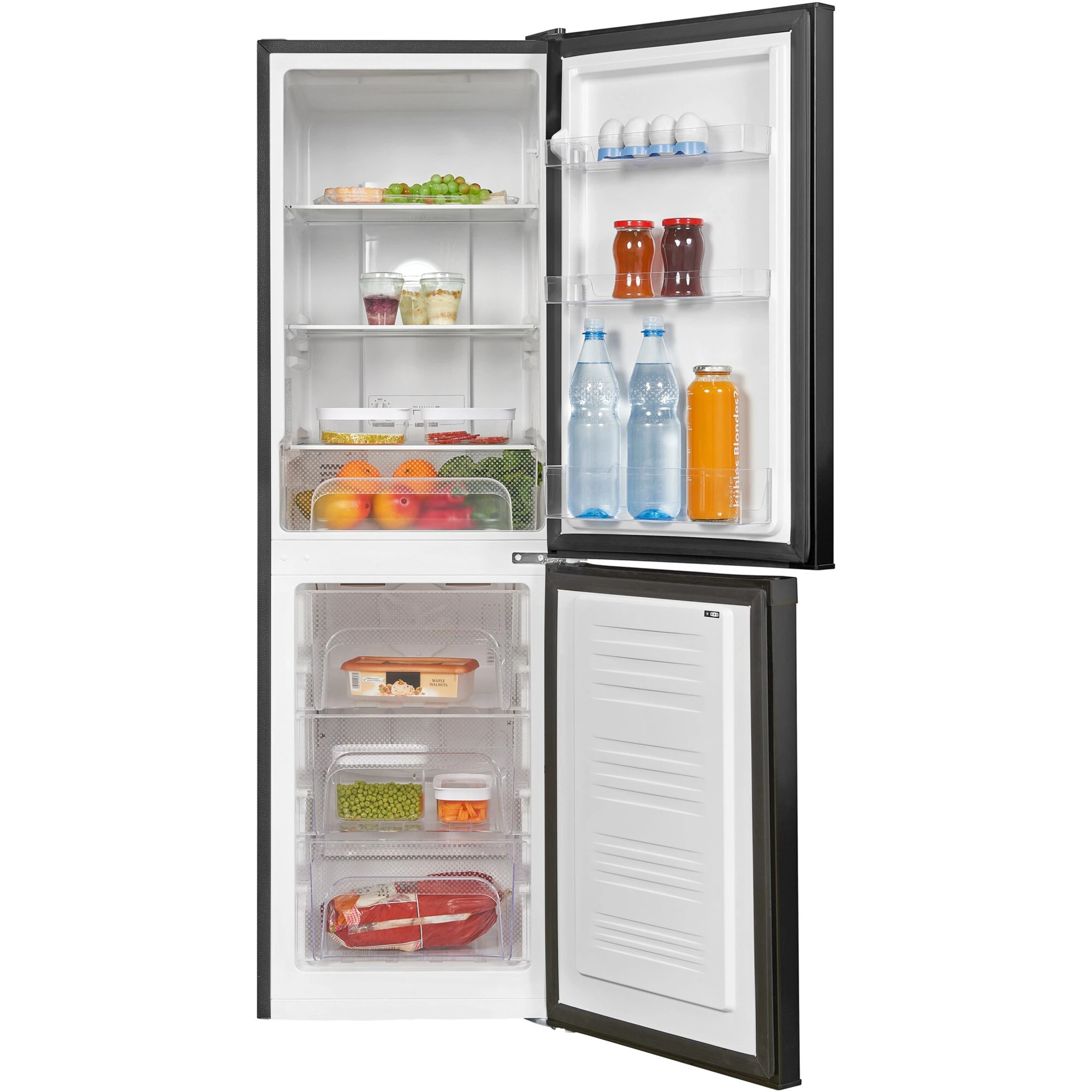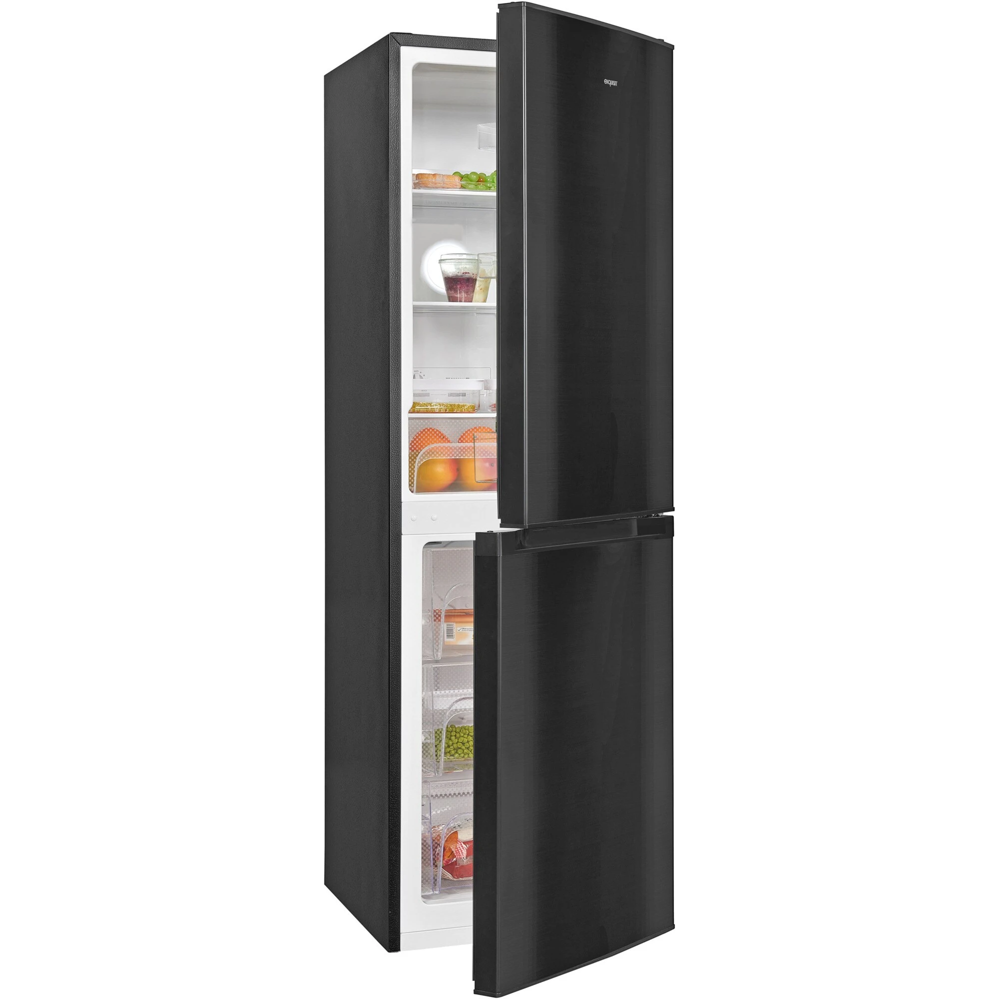 Die Kühl-/Gefrierkombination Exquisit KGC195-65-NF-330F ist mit einem Gesamtnutzinhalt von 193 Litern ideal für den mittelgroßen Haushalt geeignet. Der 129 Liter umfassende Kühlraum stellt drei Glasabstellflächen, davon eine höhenverstellbar, eine Obst-/Gemüseschubladen sowie drei Türfächer zur übersichtlichen Lagerung frischer Lebensmittel zur Verfügung. Das LED-Licht sorgt stets für eine gute Sicht auf die Speisen und der Umluftventilator sorgt für eine gleichmäßige Kälteverteilung. Der Gefrierbereich der KGC195-65-NF-330F umfasst 64 Liter und ist mit drei Gefrierschubladen ausgestattet. Dank der NoFrost-Technologie wird die Eisbildung im Gefrierraum verhindert, sodass dieser nicht mehr mühsam abgetaut werden muss. Die Temperatur lässt sich bequem elektronisch steuern. Mit einem Stromverbrauch von 256 kWh im Jahr ist die KGC195-65-NF-330F in die Energieeffizienzklasse F eingestuft.