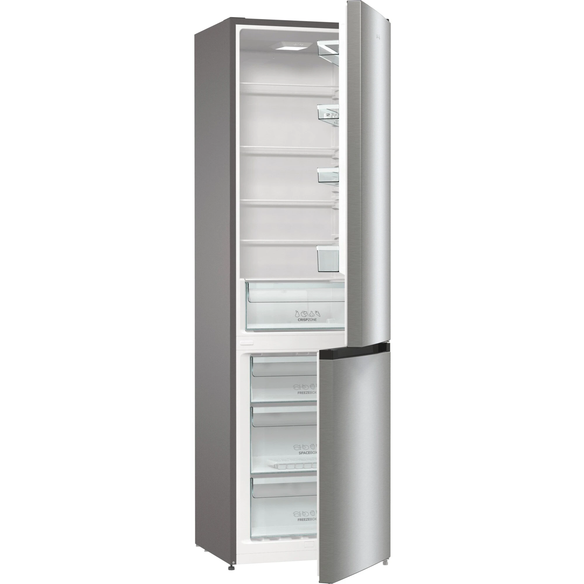 Die Kühl-/Gefrierkombination gorenje RK6202ES4 ist mit einem Gesamtnutzinhalt von 348 Litern ideal für den mittelgroßen Haushalt geeignet. Der 239 Liter umfassende Kühlbereich ist mit fünf Glasabstellflächen, einer CrispZone mit Feuchteregler für Obst und Gemüse sowie vier Türfächern ausgestattet. IonAir erzeugt im Gerät negativ geladene Ionen, die dank des MultiFlow-360°-Systems gleichmäßig im Kühlschrank verteilt sind, sodass der Geschmack bewahrt und unangenehme Gerüche entfernt werden. Der Gefrierbereich stellt auf einem Nutzinhalt von 110 Litern drei Gefrierschubladen zur Verfügung und muss dank FrostLess seltener abgetaut werden. Die FastFreeze-Funktion friert die Lebensmittel bei -24°C ein, um die meisten Mineralien in den Lebensmitteln zu erhalten. Mit einem Stromverbrauch von 244 kWh im Jahr ist die RK6202ES4 in die Energieeffizienzklasse E eingestuft.