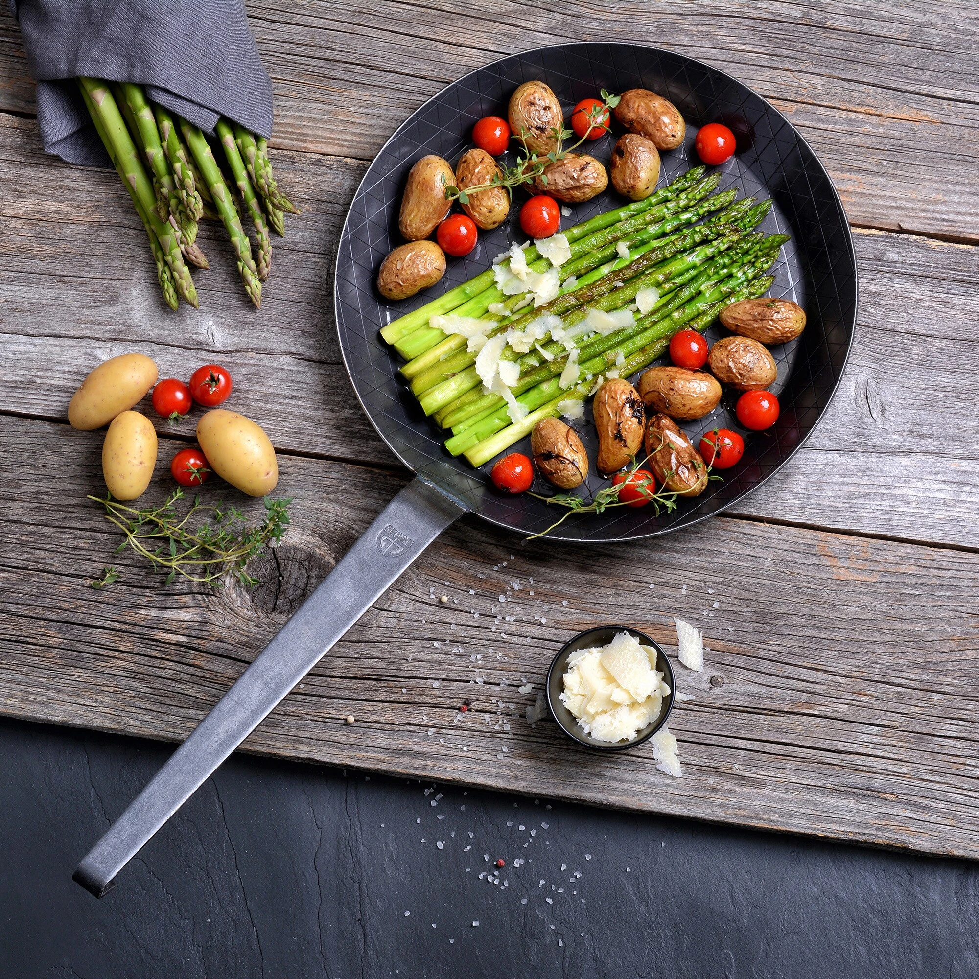 Schmiedeeiserne Bratpfanne zum krossen Braten von Gerichten!