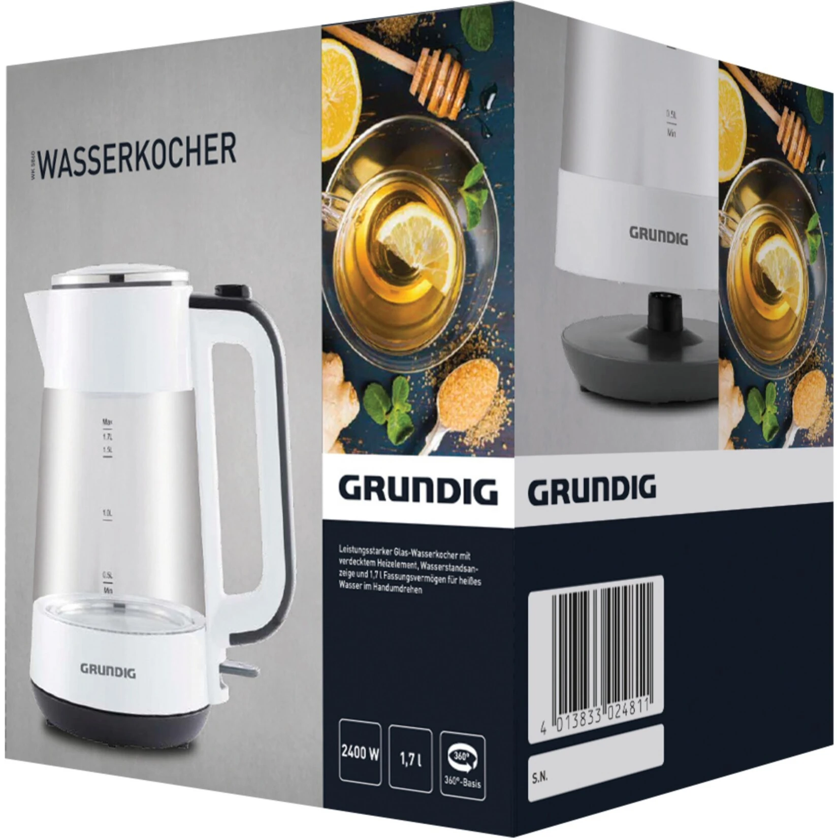 Der Wasserkocher WK 5860 von Grundig hat einen transparenten Korpus und erfüllt die höchsten Ansprüche an guten Geschmack. Mit 1,7 Litern Fassungsvermögen und kraftvollen 2400 Watt ist effizientes Erhitzen gesorgt und dank der Wasserstandsanzeige hat man die Füllmenge stets im Blick.