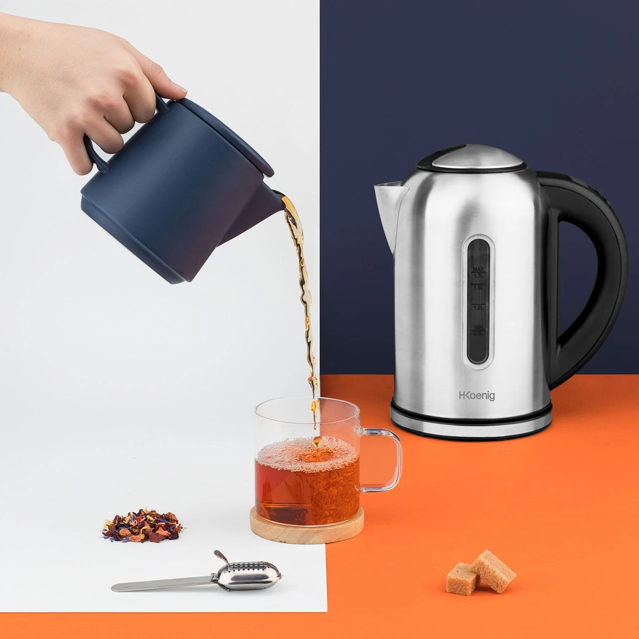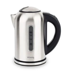 Der praktische Wasserkocher von H.König lässt sich dank seiner digitalen Tempereatureinstellung von 40°C bis 100°C (in 5°C Schritten) einstellen. So kann ihr Tee, Kaffee oder Milch mit der optimalen Temperatur zubereitet werden. Insbesondere die Bereitung von Wärmflaschen läßt sich so optimal temperieren. Die Warmhaltefunktion hält das Wasser auf der richtigen Temperatur warm. Einfache Handhabung dank der Deckelöffnung auf Knopfdruck, der 360° Basis und der Wasserstandanzeige.