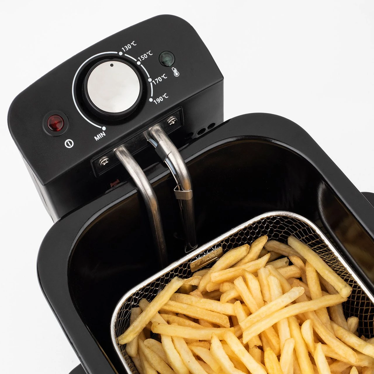 Mit der Fritteuse DFX500 bereiten Sie in kürzester Zeit und mit Leichtigkeit bis zu 1 kg frische Pommes zu. Mit einer Leistung von 2200 W können Sie das Speiseöl schnell und gleichmäßig erhitzen. Passen Sie die Temperatur dank des einstellbaren Thermostats an Ihre Bedürfnisse an. Dank spülmaschinenfestem und herausnehmbarem Korb ist die Reinigung der Friteuse kinderleicht.