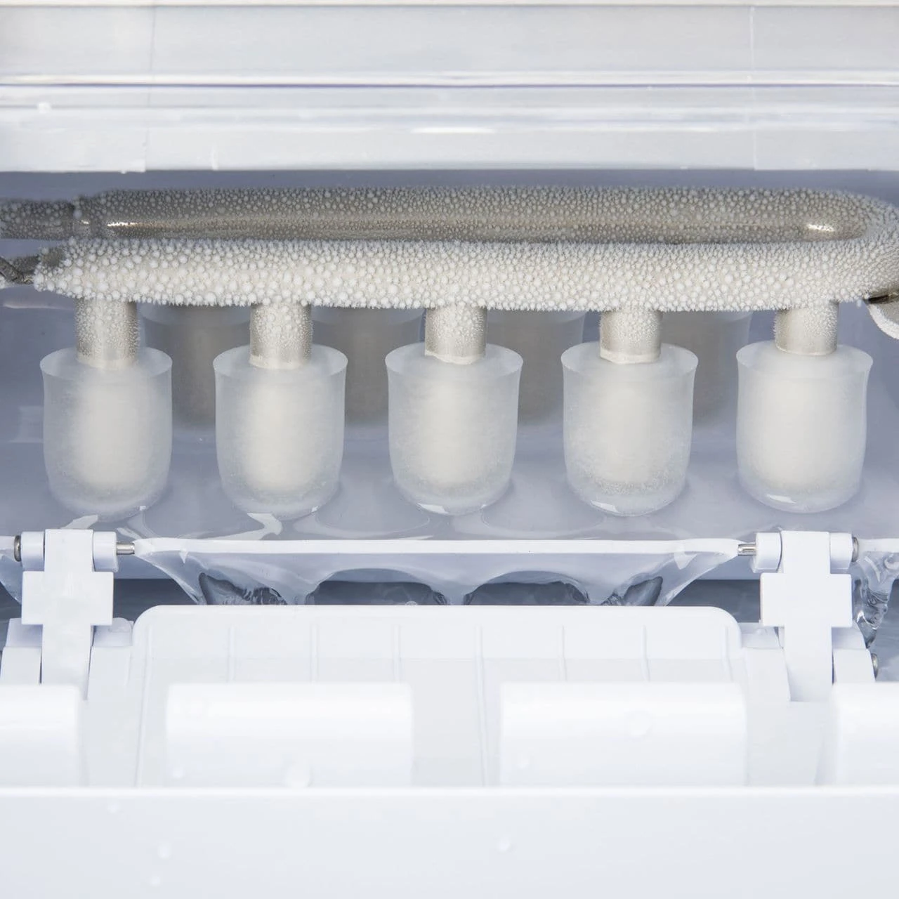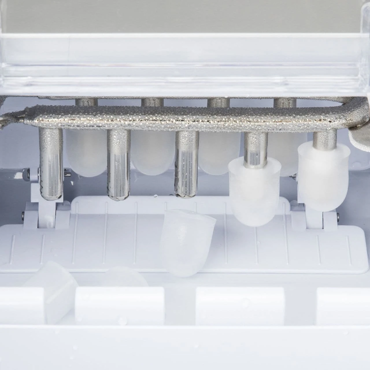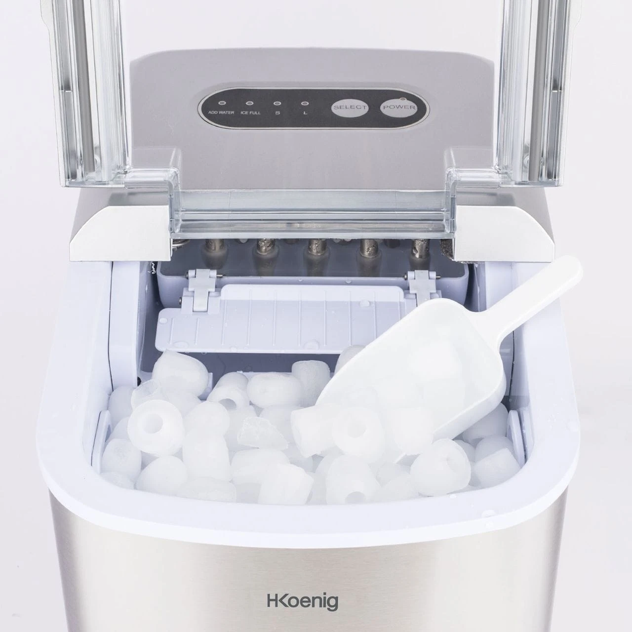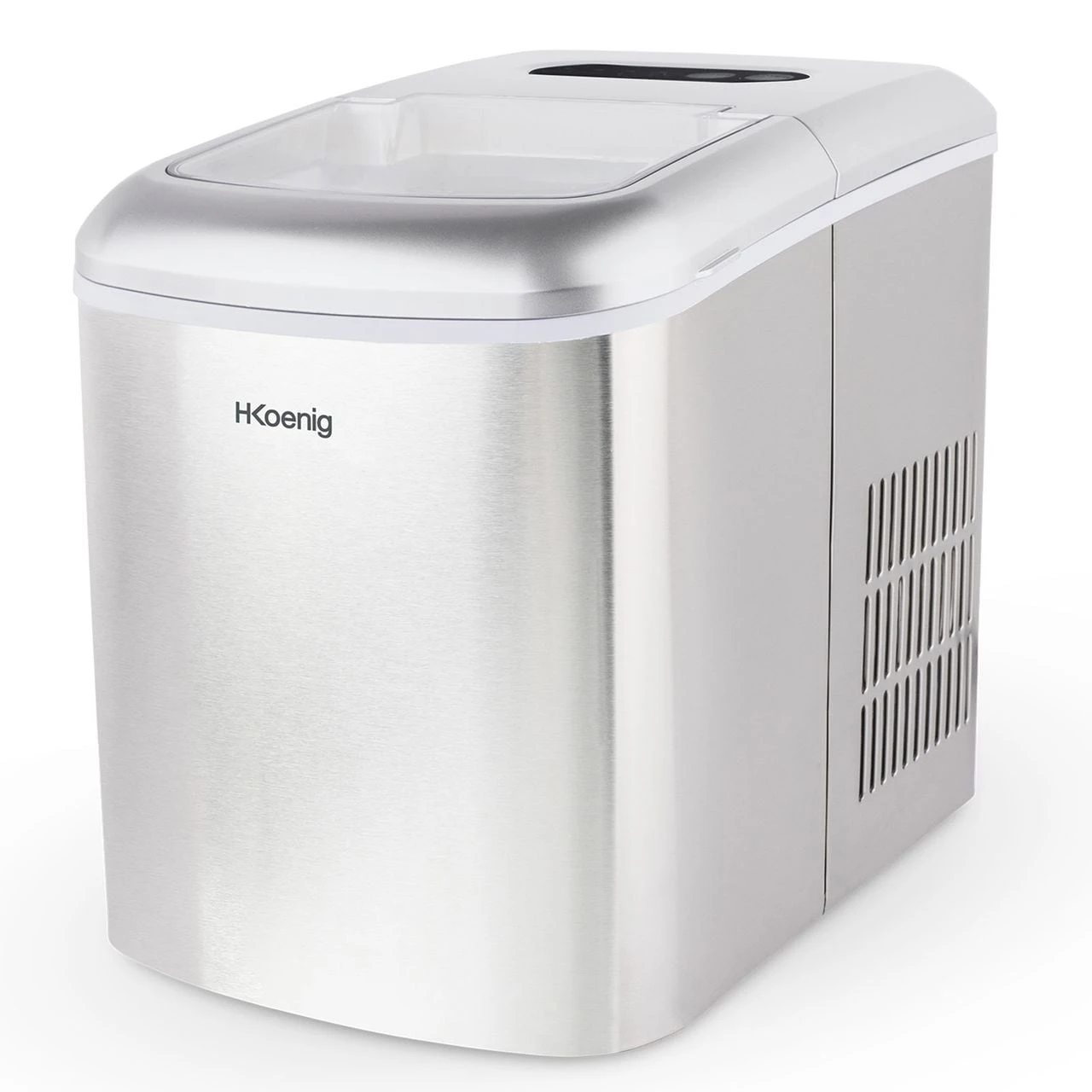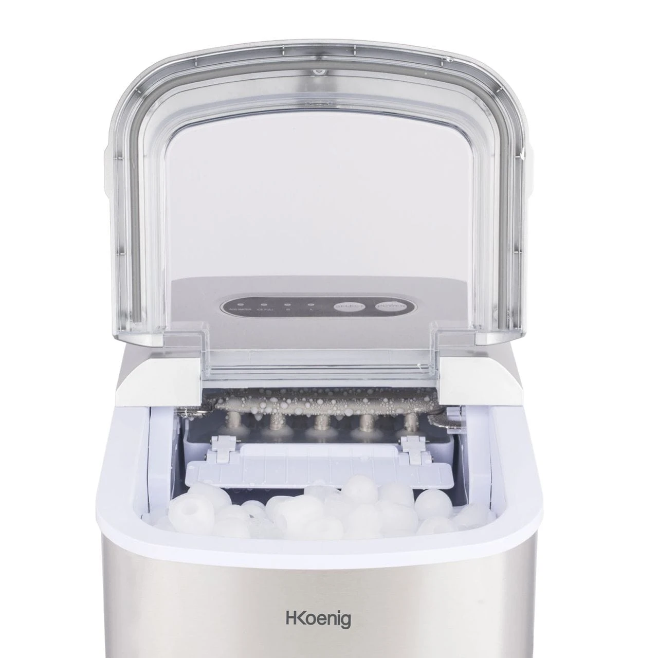 Der HKoenig KB20 Eiswürfelbereiter ist das perfekte Gerät um Sommergetränke abzukühlen. Das Gerät produziert schnell 9 Eiswürfel alle 6 bis 13 Minuten und bis zu 12 kg pro Tag. Die Eiswürfelproduktion erfolgt automatisch und ist dank des integrierten LCD-Displays einfach zu steuern.