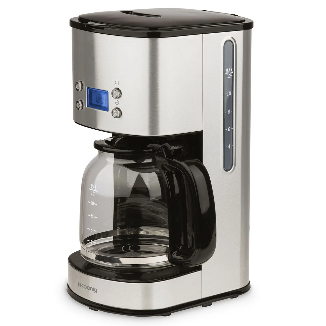 Starten sie in den Tag mit frisch gebrühtem Kaffee! Dank des großzügigen Wassertanks von 1,8l bereiten Sie mit der Edelstahl Kaffeemaschine MG30 bis zu 12 Tassen frischen Kaffee zu. Das LCD Display zeigt die Uhrzeit an und bietet eine Timer-Funktion, mit der Ihr Kaffee zu einem vorgegebenen Zeitpunkt gebrüht wird. Die integrierte Warmhalteplatte hält die Temperatur des Kaffees in der Glaskanne konstant. Der Permanent-Filter ist ebenso wie der Filterhalter herausnehmbar und leicht zu reinigen. Weitere Ausstattungsmerkmale sind das Anti-Tropf-System und die automatische Abschaltfunktion nach 40 Minuten.