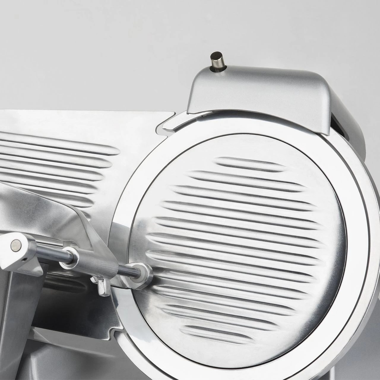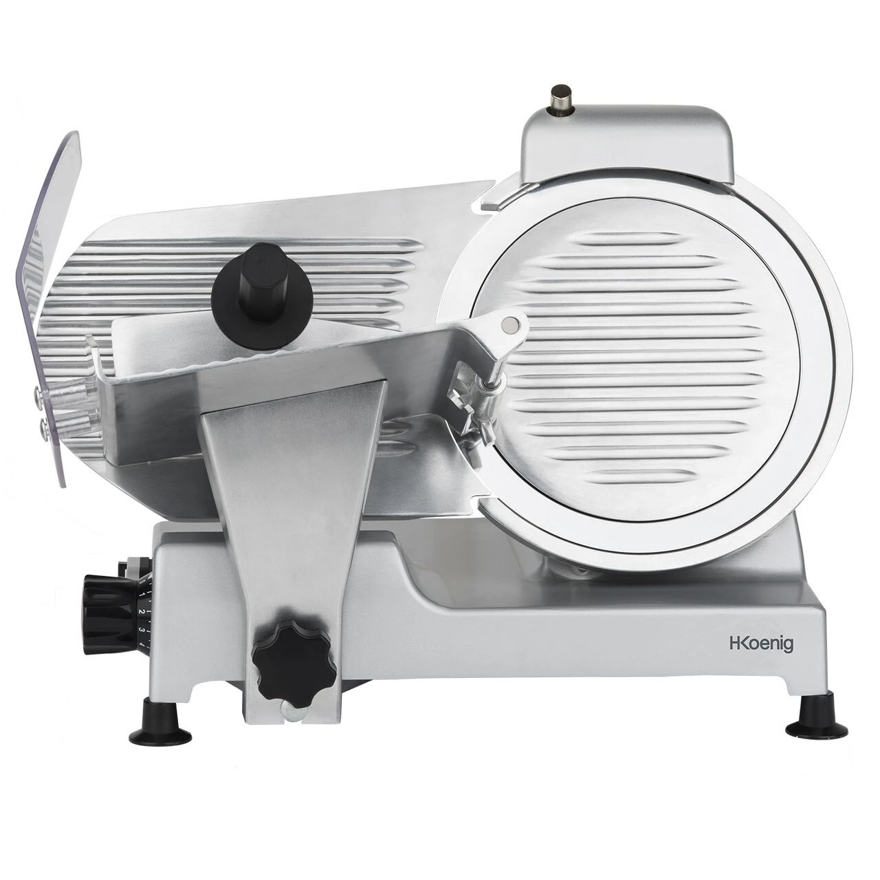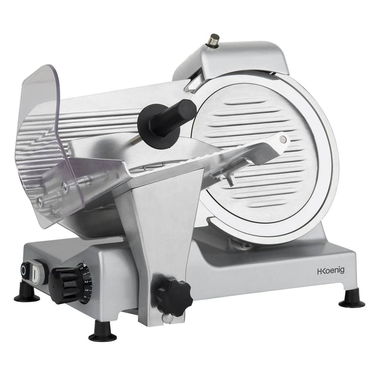 Der Allesschneider ist mit einer hochwertigen italienischen Klinge mit 25 cm Durchmesser ausgestattet. Dank der Schnitt-Einstellung von 0 bis 12 mm können Sie die Scheibendicke präzise kontrollieren und das Gerät an Ihre Bedürfnisse anpassen. Aufschnitte von Fleisch- und Wurstwaren, Brot, Obst, Käse werden Ihre Mahlzeiten vervollständigen. Durch den leistungsfähigen Asynchronmotors mit 240 W Leistung und 282 UpM (Umdrehungen pro Minute) ist ein perfektes Ergebnis garantiert. Mit dem eingebauten Messerschärfer ist das Gerät einfach zu pflegen.