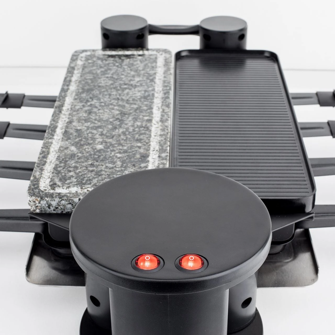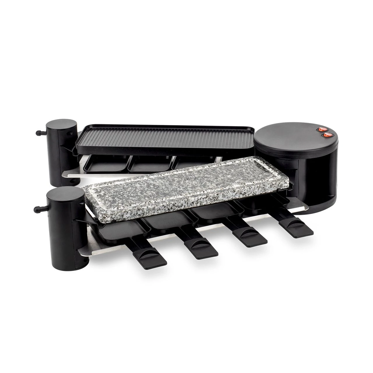 - 4 Funktionen: Raclette, Grill, Pancakes, Warmhaltefunktion