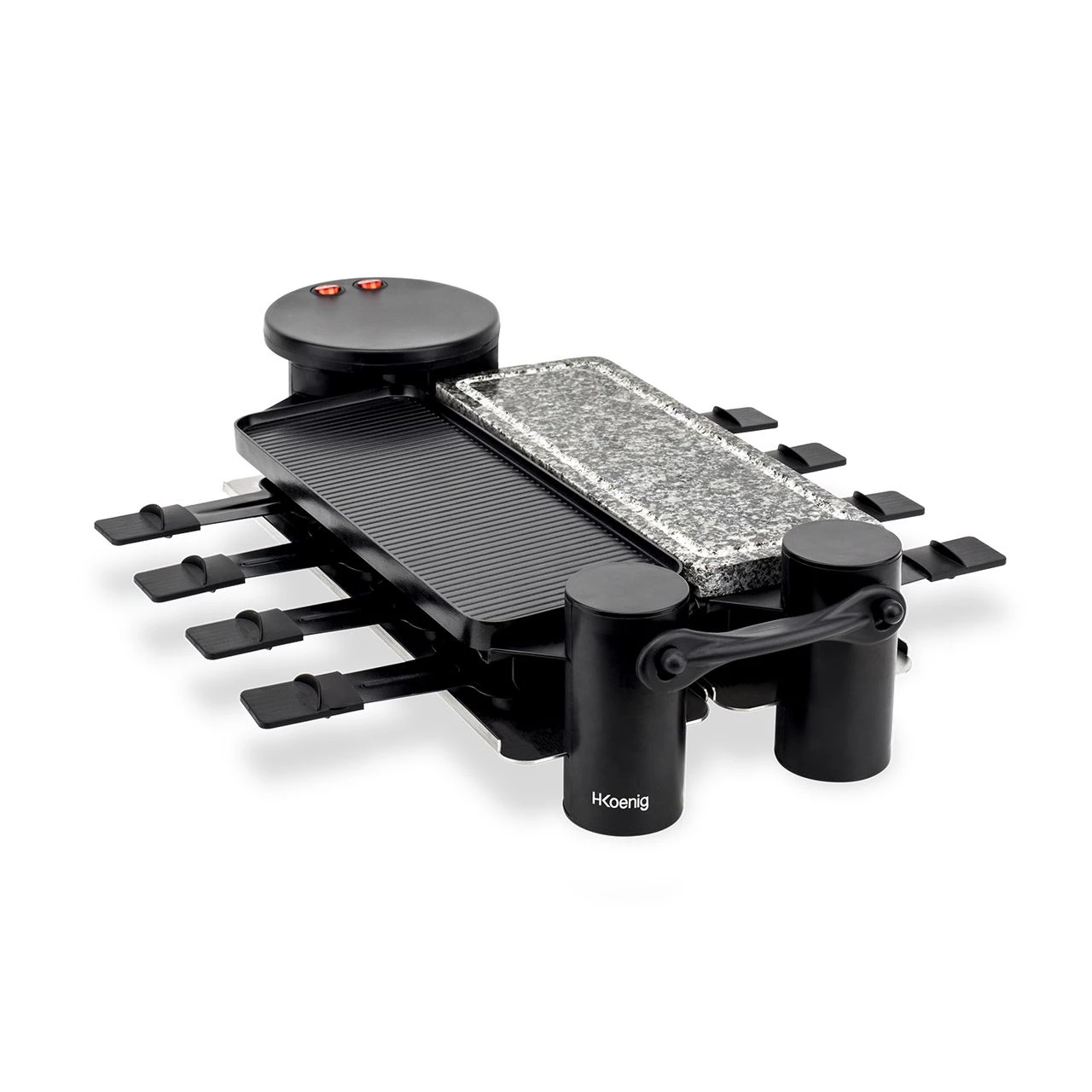 Sie sind auf der Suche nach einem Raclette, das sich Ihren Bedürfnissen anpasst? Das neue HKoenig RP360 Raclette bietet optimale Zugänglichkeit für bis zu 8 Personen. Dank seinem 360° Drehgelenk können Sie die 2 Raclette-Teile entweder komplett der Länge nach aufgeklappt, komplett geschlossen oder in jedem Winkel geöffnet platzieren und sicherstellen, dass jeder problemlos Zugang hat. Somit erreicht jeder Gast auch an einer langen Tafel sein Raclette-Pfännchen.