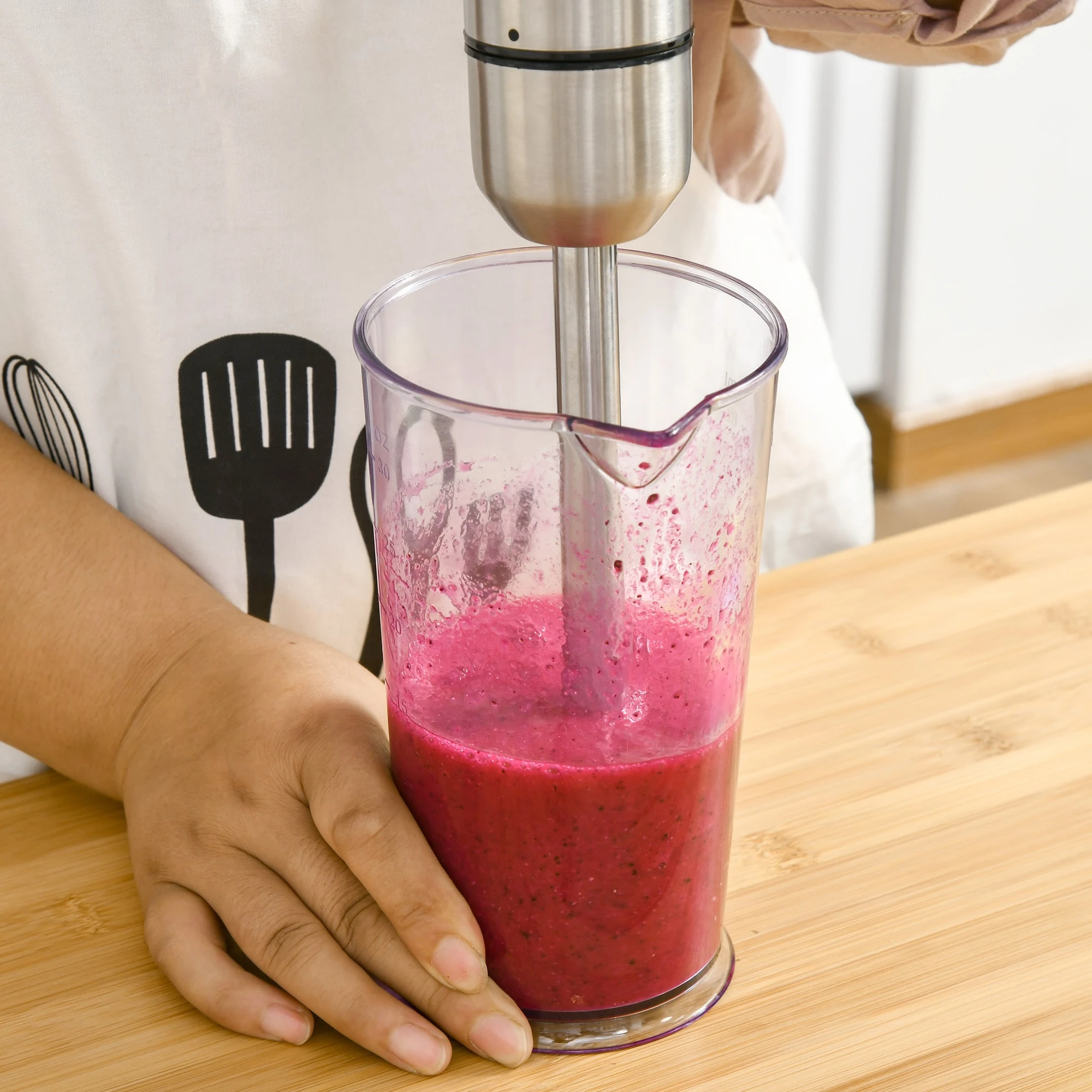 Ein vielseitiger Mixer ist eine notwendige Unterstützung bei der Zubereitung leckerer Speisen. Der multifunktionale Stabmixer wird Ihnen ein guter Küchenhelfer sein. Mit seinem vielfältigen Zubehör und der einstellbaren Geschwindigkeit können Sie ihn zum Zerkleinern von Eis, zum Auspressen von Früchten, zum Zerkleinern von Nüssen und zur Herstellung von Shakes verwenden dieser Stabmixer erfüllt alle Anforderungen. Außerdem ist dieser Stabmixer auch leicht zu reinigen.