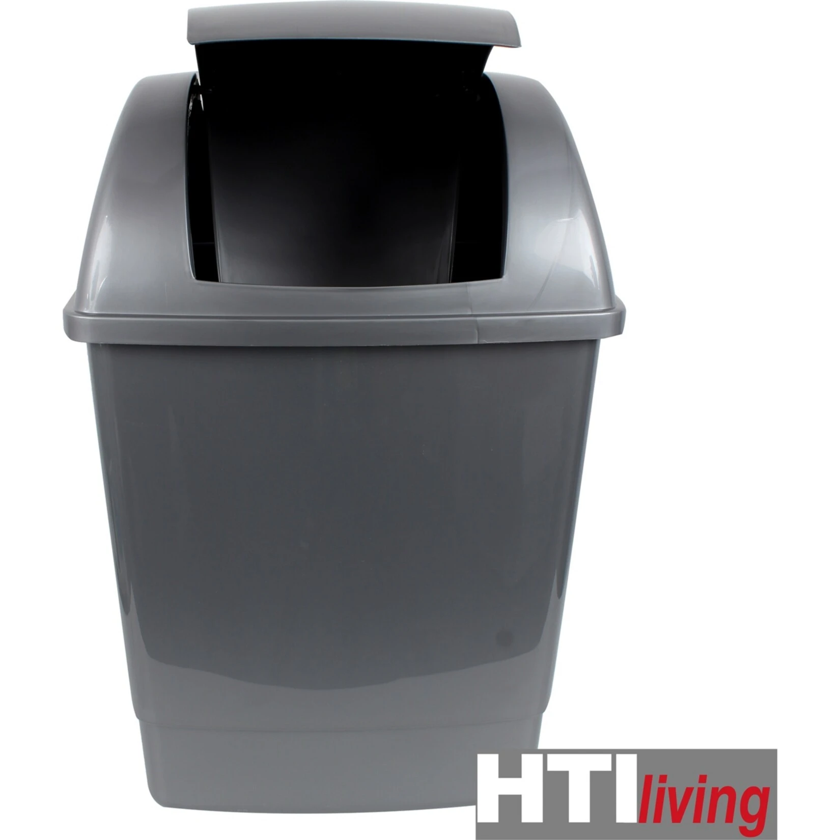 Abfalleimer mit Schwingdecke. Eckiger Abfalleimer mit praktischem abnehmbarem Schwingdeckel. Mit 12 Litern Fassungsvermögen fügt er sich platzsparend z.B. auch in kleine Küchen ein. Die klassischen Farben silber und anthrazit passen in jeden Wohnstil.