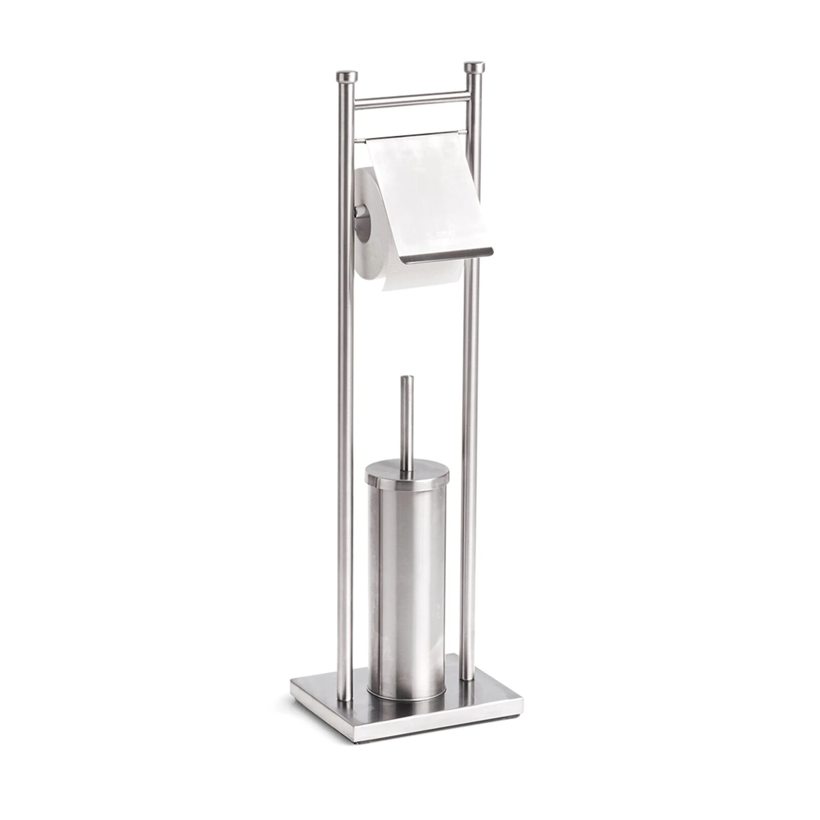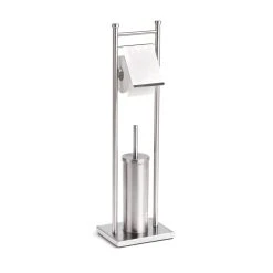 Ein praktischer Helfer, der in keinem Bad fehlen sollte! Die freistehende WC-Garnitur verfügt über einen Rollenhalter passend für eine Toilettenpapierrolle und eine WC-Bürste. Der beschwerte Fuß verhindert das Verrücken des Toilettensets. Optimal für kleine Bäder geeignet.