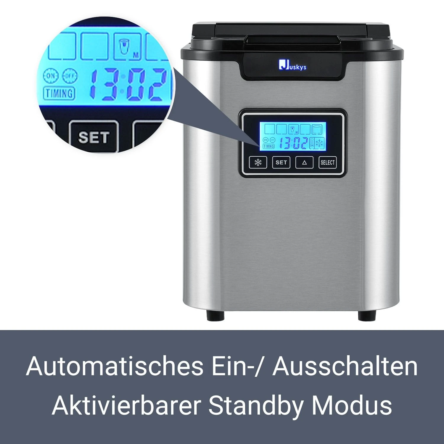 Mit der praktischen Timer-Funktion können Sie eine Tageszeit für ein automatisches Ein- und Ausschalten der Eismaschine festlegen. Durch die automatische Schaltung sparen Sie nicht nur Ihre kostbare Zeit, sondern kontrollieren auch den Stromverbrauch. Zusätzlich verfügt das Gerät über einen manuell aktivierbaren Standby Modus.