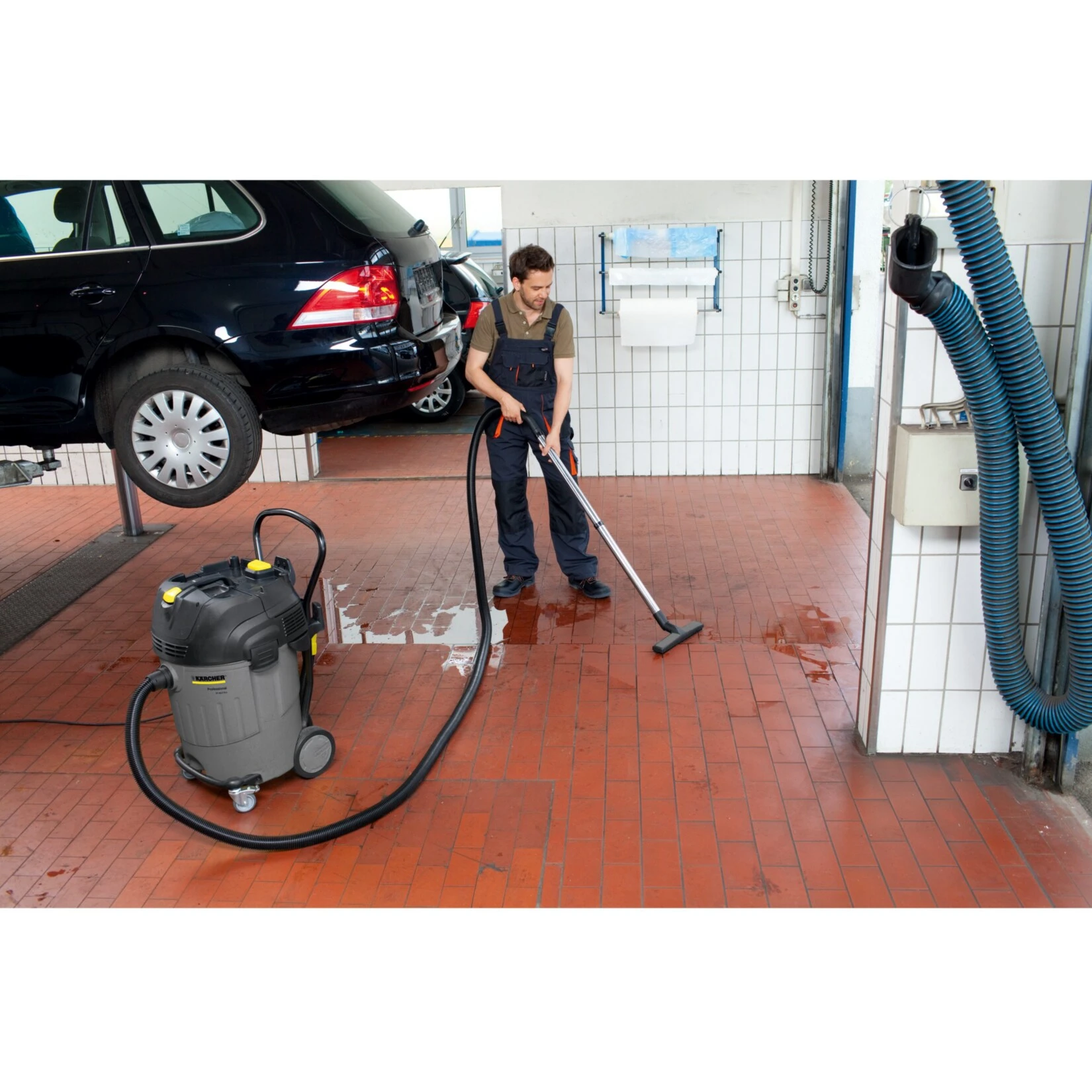 Beim Kärcher NT 65/2 Ap handelt es sich um einen leistungsstarken Nass-/Trockensauger mit ApClean-System für eine konstant hohe Saugleistung und lange Arbeitsintervalle. Der Sauger verfügt über ein kompaktes Turbinengehäuse mit integriertem Filterdeckel zur leichten Entnahme des großen Flachfaltenfilters. Dieser wird mit Hilfe der semi-automatischen Filterabreinigung ApClean wirkungsvoll gereinigt. Dies sorgt für konstant hohe Saugleistung, längere Arbeitsintervalle und eine lange Lebensdauer des Filters. Der NT 65/2 Ap verfügt über eine elektronische Füllstandskontrolle beim Nasssaugen, welche ein Überschreiten der maximal zulässigen Füllmenge verhindert. Aufgesaugte Flüssigkeiten können über einen fest angebrachten, ölbeständigen Ablassschlauch problemlos entsorgt werden. Zubehör kann mit Hilfe des Clip-Systems einfach und schnell an den Sauger angeschlossen werden. Am Gerät befindet sich eine Schlauchaufbewahrung, eine Zubehörhalterung sowie eine große Ablagefläche, z. B. für Werkzeuge. Zwei große Bockräder und zwei Lenkrollen, geben dem NT 65/2 Ap die erforderliche Mobilität.