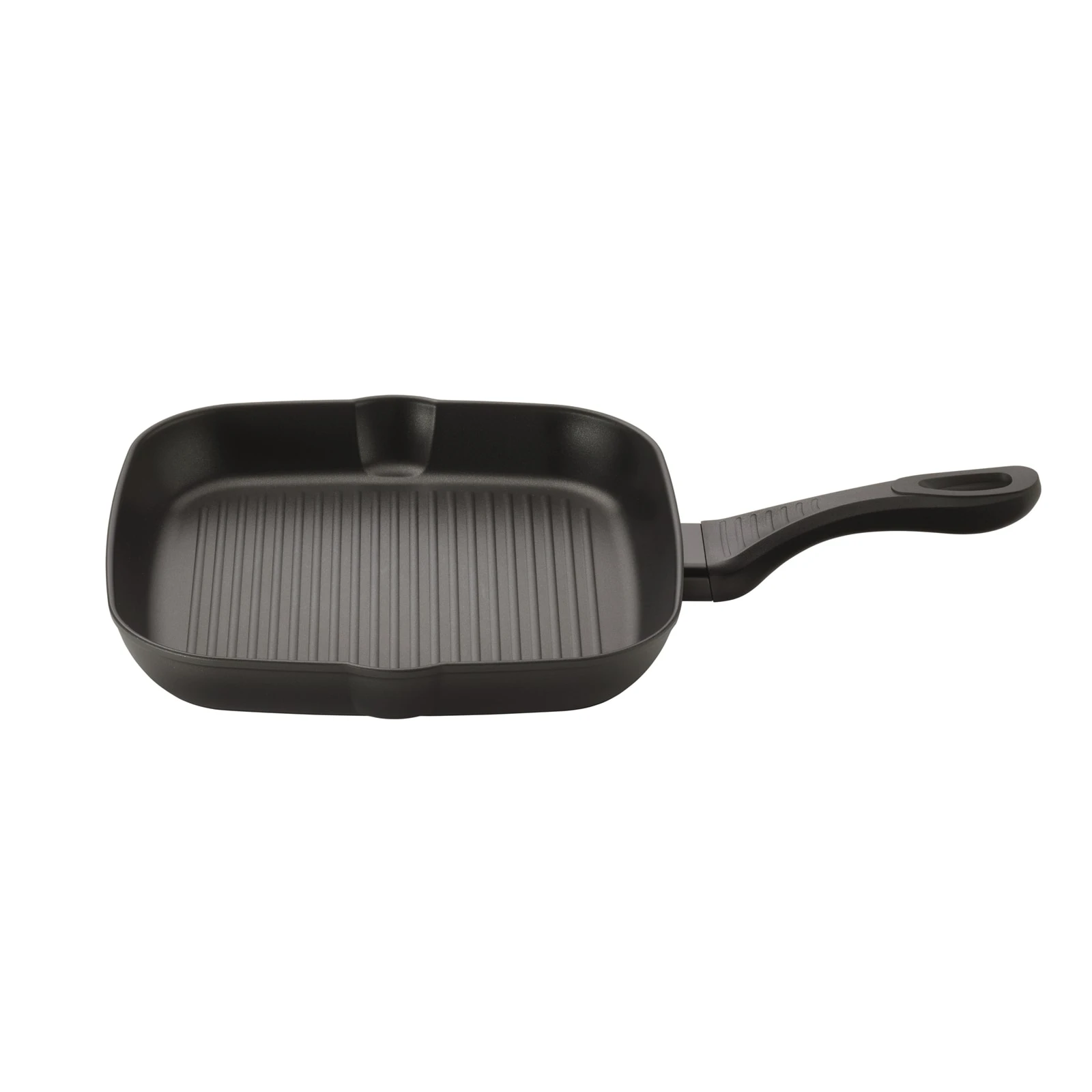 Mit dem Grill-Chef on KELOMAT holen sich Freunde des sommerlichen Grillvergnügens das Grillerlebnis in die eigenen vier Wände. Die quadratische Grillpfanne von KELOMAT überzeugt durch die hervorragende Antihaftbeschichtung und die Grillrippen. So gelingen saftige Würstchen, Steaks und Koteletts ohne lästiges Anhaften und mit dem typischen Grillmuster. Der superstarke ThermoPlus-Boden leitet Hitze schnell und garantiert eine sehr schnelle Anbratzeit. So gelingt das Grillvergnügen zu jeder Jahreszeit.