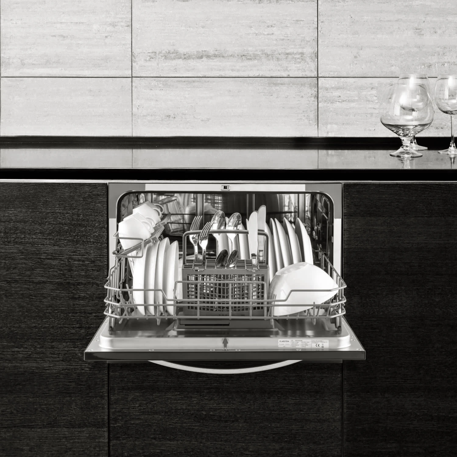 Besondere Aufmerksamkeit verdient die Klarstein Amazonia Luminance aufgrund ihres edlen Designs: Ihr schwarzer Korpus mit dem geschwungenen Edelmetallgriff bringt in jede Küche einen Hauch von Luxus – so wird Geschirrspülen sogar zur Augenfreude. Mit ihren platzsparenden Maßen eignet sie sich besonders für Single-Haushalte mit wenig anfallendem Geschirr oder Kaffeeküchen in denen täglich Tassen und Gläser gereinigt werden müssen. Dabei kann der Tischgeschirrspüler sehr gut auf Arbeitsplatten oder Tischen aufgestellt oder in Schränken von Küchenzeilen integriert werden.