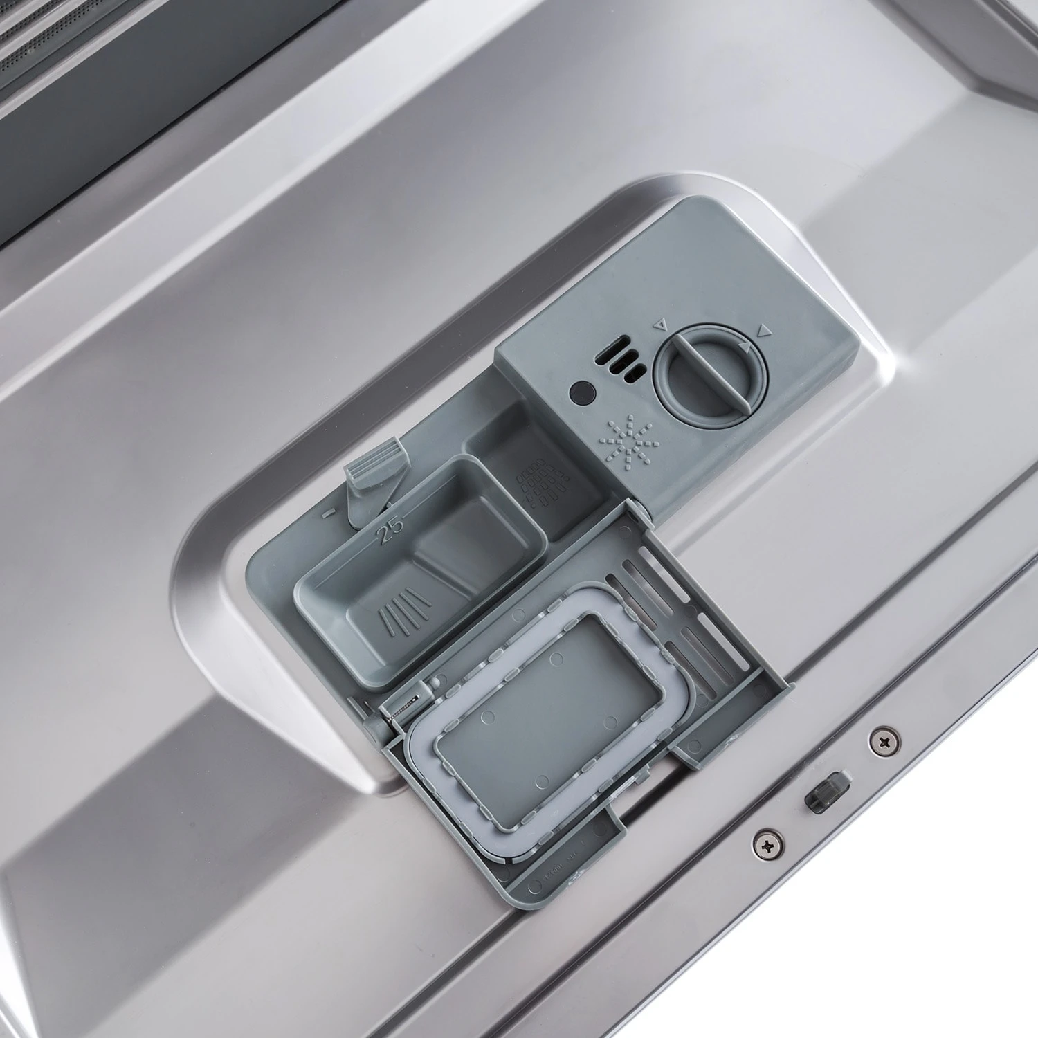 Alle Programme lassen sich schnell und einfach über die aufgeräumte Armatur des Klarstein Geschirrspülers mit Symboldarstellung und drei Touchtasten einstellen. Kontrollleuchten zeigen dabei an, welches Programm gewählt wurde, während ein LED-Display die Restlaufzeit des Programms angibt. Zwei weitere Kontrollleuchten informieren über notwendige Nachfüllungen von Reinigungssalz oder Klarspüler.