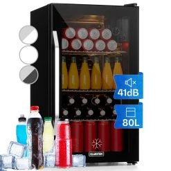Kompakter Getränkekühlschrank mit 80 Liter Fassungsvermögen in luxuriösem Schwarz für Kleinhaushalte, Partyräume oder Gartenhäuser.