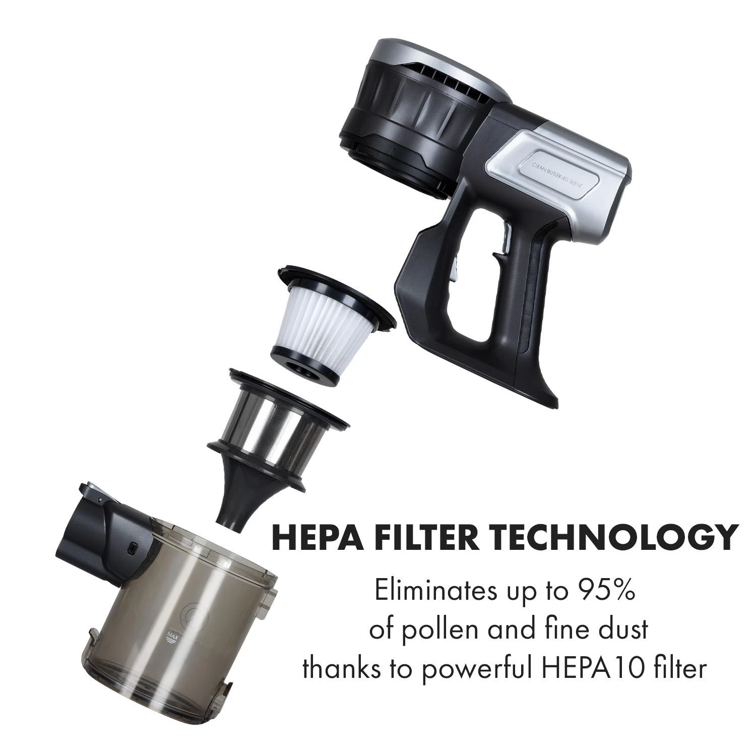- HEPA Filter-Technik: beseitigt bis zu 95 % an Pollen und Feinstaub dank leistungsstarkem HEPA10-Filter