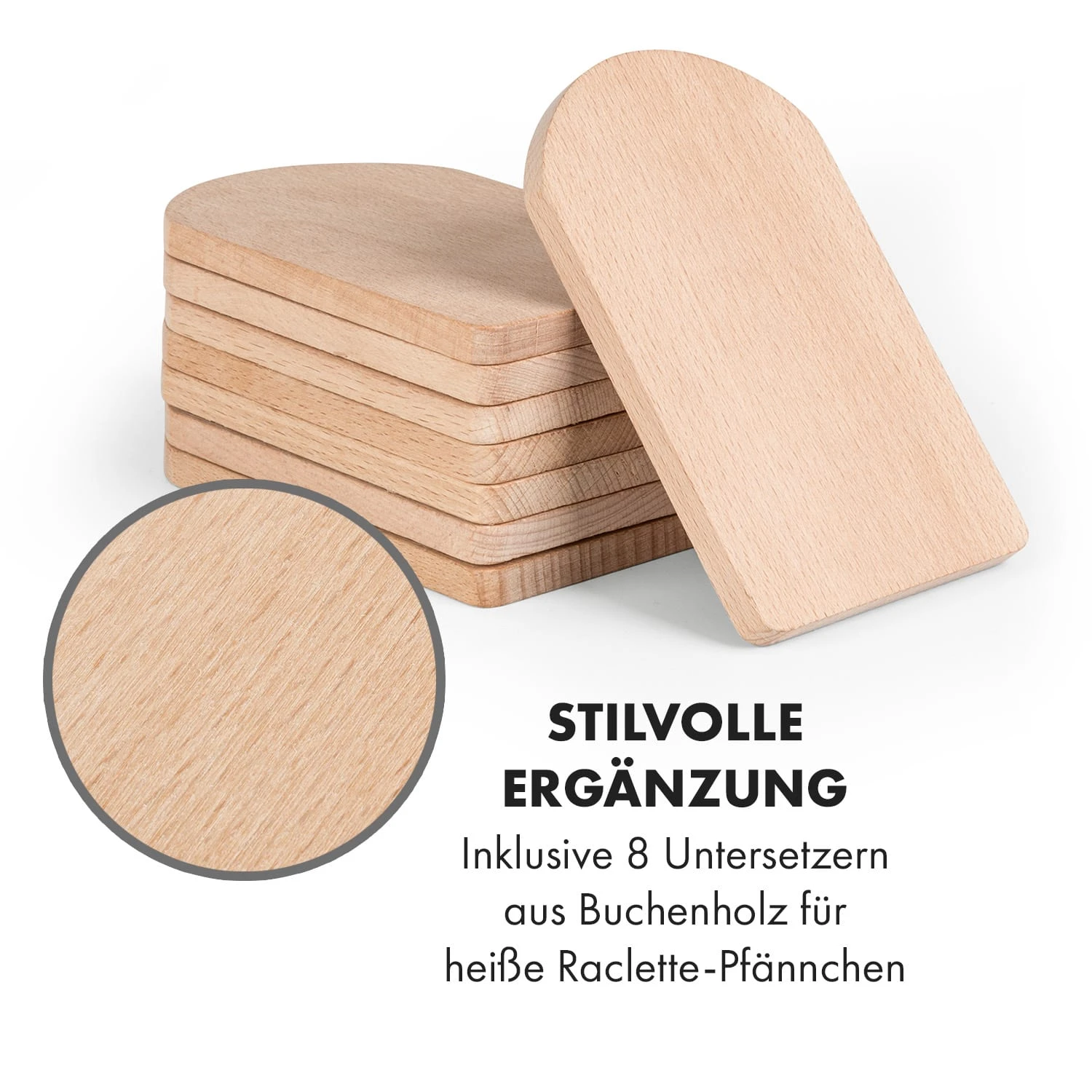 - Stilvolle Ergänzung: inklusive 8 Untersetzern aus Buchenholz für heiße Raclette-Pfännchen