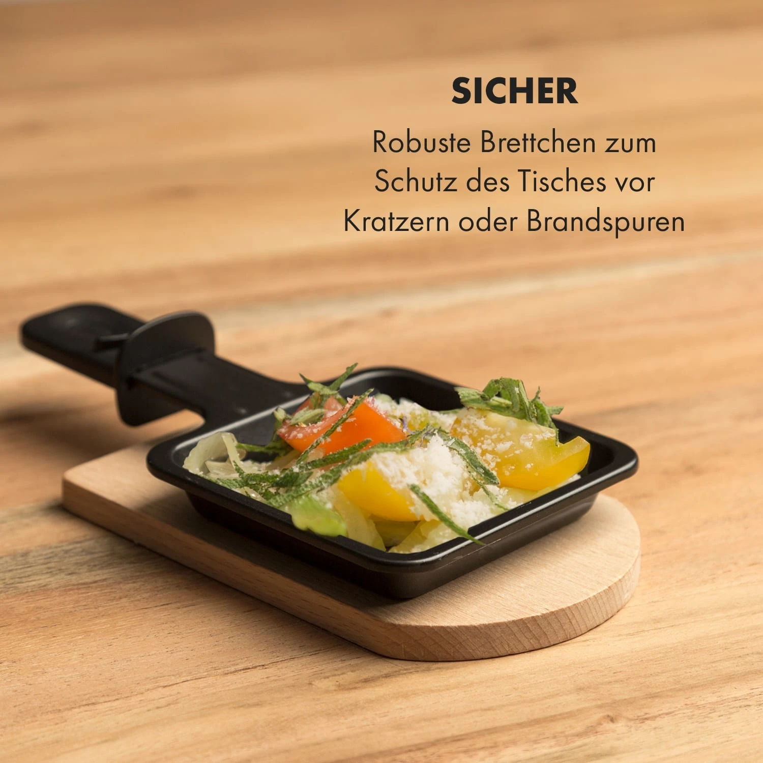 - Sicher: robuste Brettchen zum Schutz des Tisches vor Kratzern oder Brandspuren